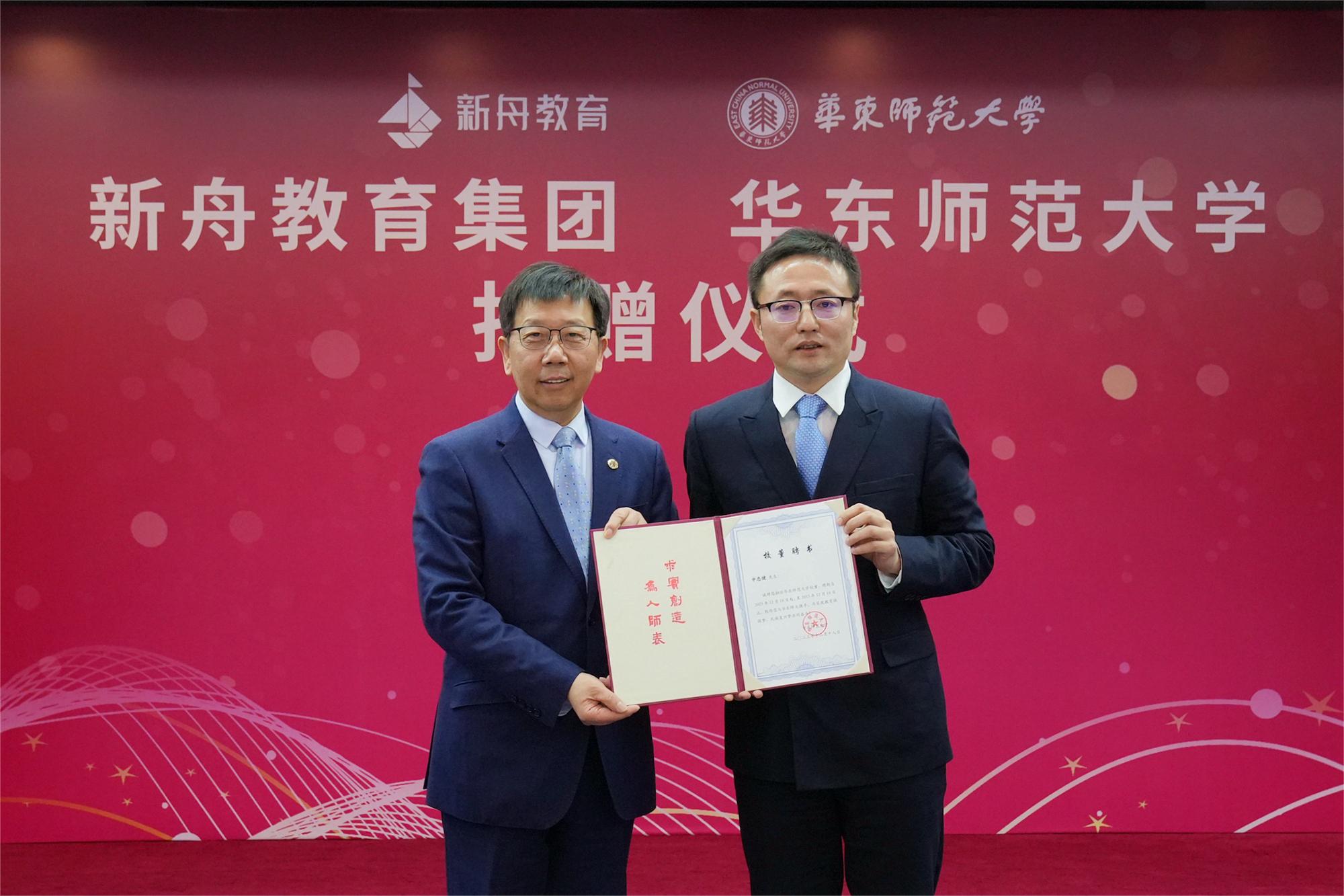 华东师大校长钱旭红院士为新舟教育集团创始人兼CEO申忠健颁发校董证书