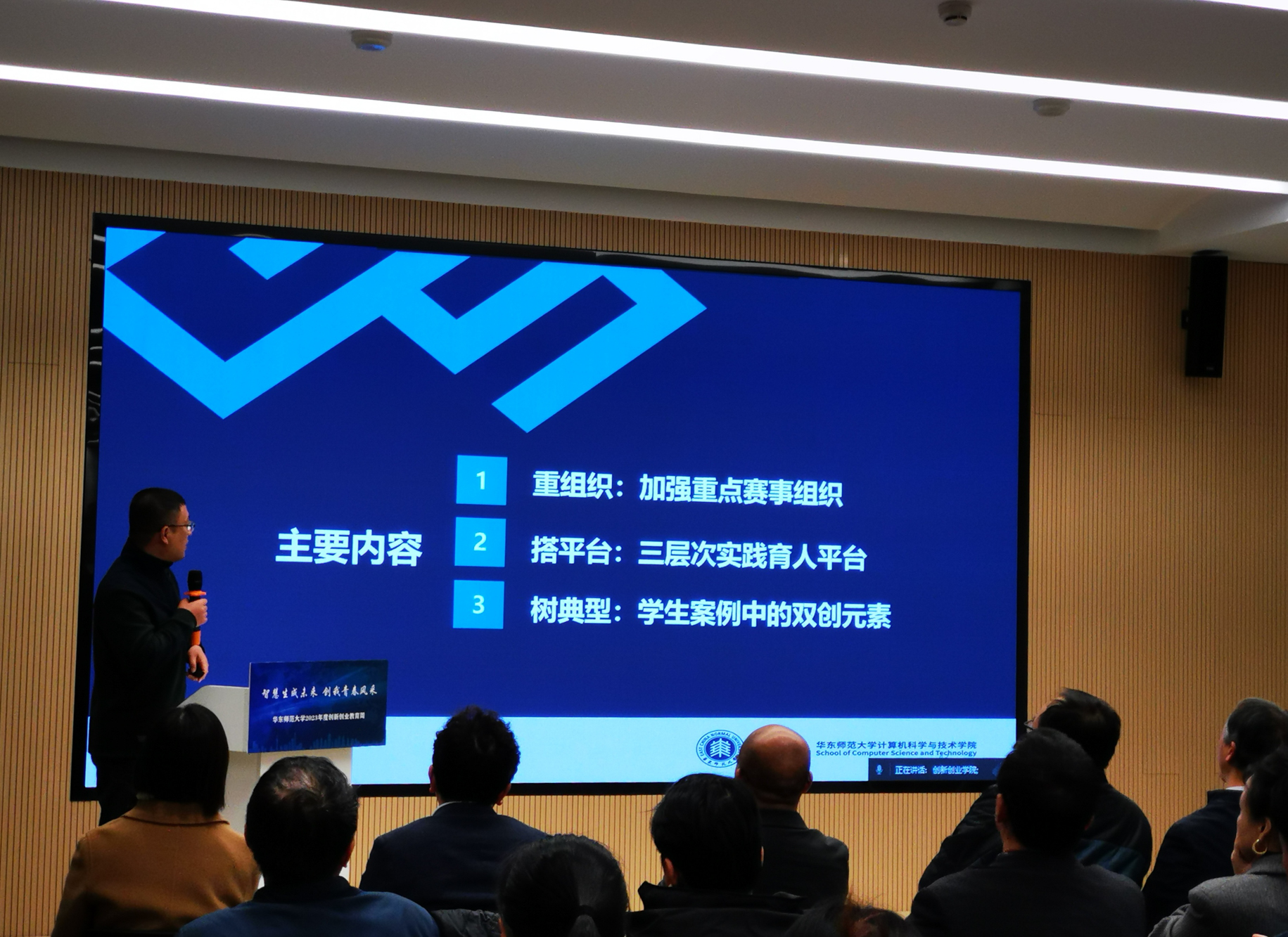 创新创业学院院长阮平章总结回顾了2023年度学校双创工作进展。今年学校以国家级双创学院建设为抓手,深耕细作双创赛事、双创教学、基地项目、双创文化建设。双创工作成果《磨砺 赋能 铸魂——师范大学创新创业教育范式的探索与实践》获国家级教学成果奖二等奖和上海市教学成果奖一等奖;《创新创业竞赛与实践》入选国家级一流本科课程;在中国国际大学生创新大赛(2023)、挑战杯等重要赛事中斩获佳绩。