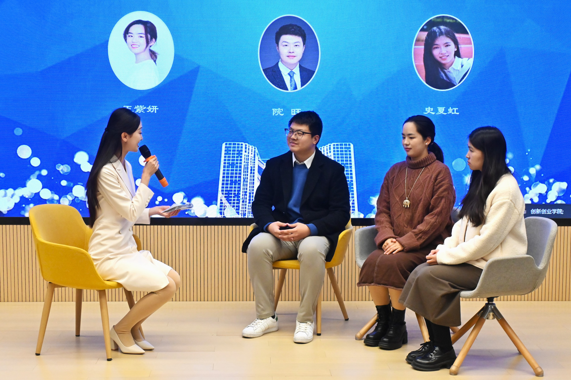 在“创智汇”新时代创新创业者说对谈中,优秀创业学生代表院旺、史夏虹、王紫妍作为对话嘉宾围绕创新创业的心路历程、得失成败、未来展望与在座师生进行了分享交流。