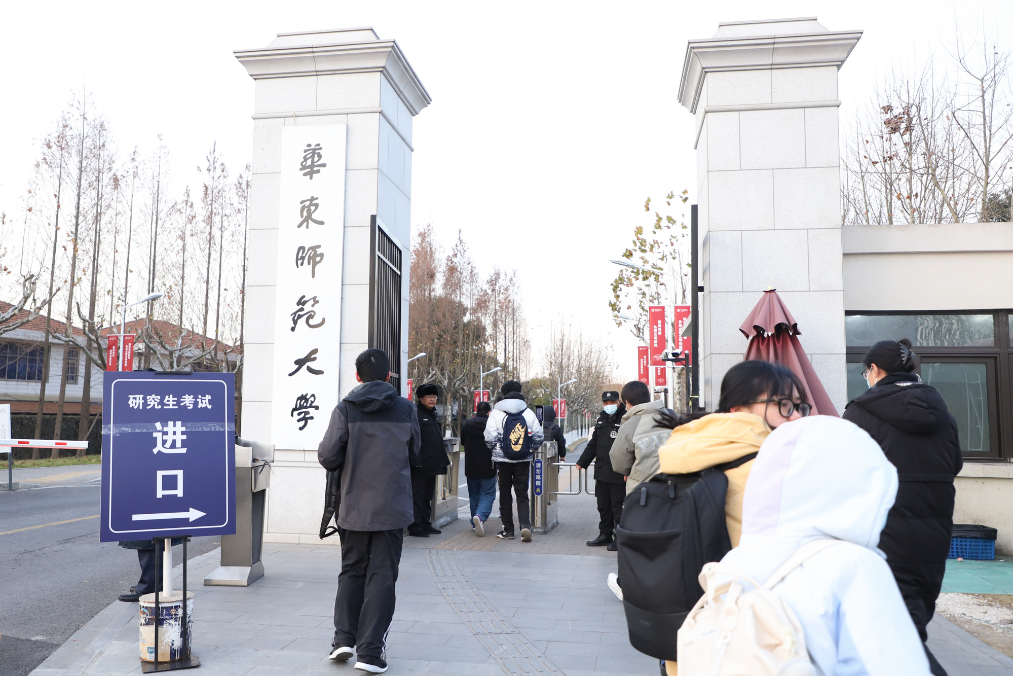 为保障诚信研考,华东师大考点配备智能安检门,保证手机“带不进”。设立复检台、优化动线设计,提升安检效率与质量。