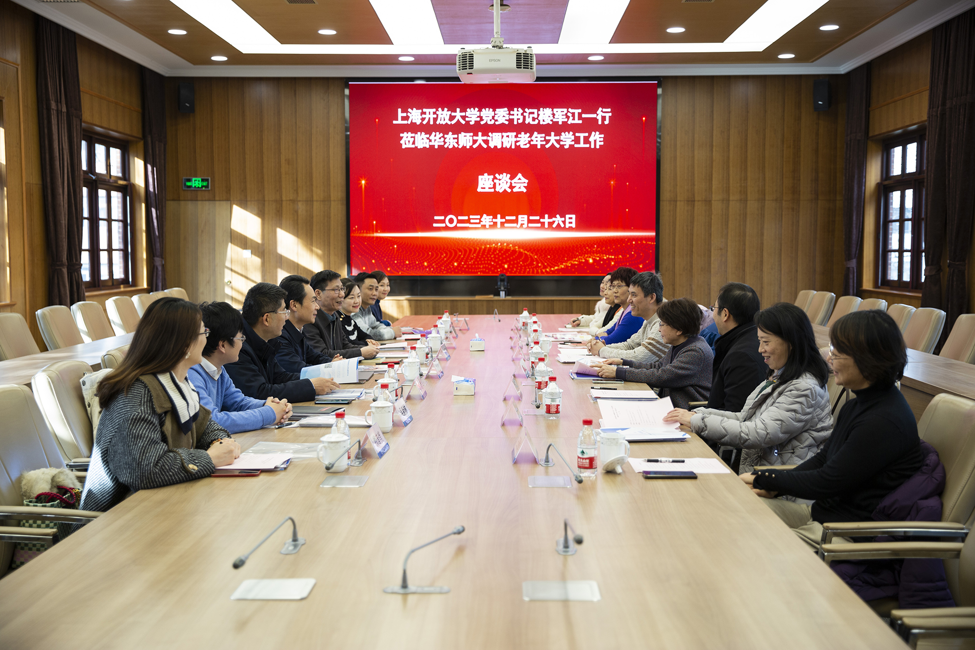 12月26日下午,上海开放大学党委书记楼军江一行赴永利皇宫登录官网调研老年大学工作。华东师大党委副书记、老年大学校长孟钟捷,华东师大老教授协会会长杜公卓、老年大学常务副校长裴建华,校老龄办、终身教育研究院、开放教育学院等相关部门负责人出席座谈交流。上海开放大学副校长、上海老年大学校长郑益慧,学指办、社区教育部,信息化建设与管理办公室、信网中心,资源中心,学分银行管理中心,上海老年大学负责人等陪同调研。