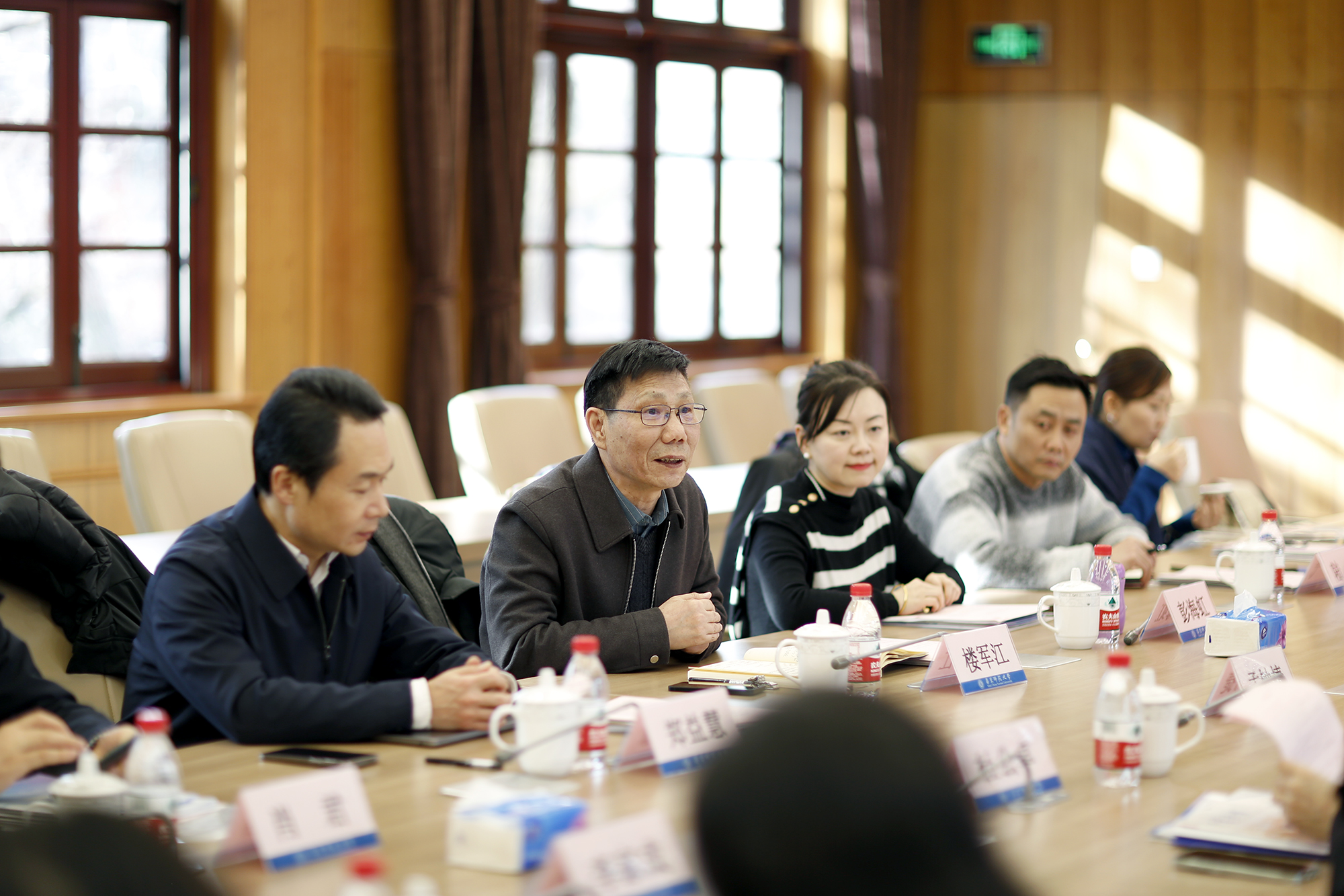 双方围绕课程资源建设、老年学习成果认定、数字化平台支撑等方面进行了深入交流。会后,楼军江一行实地走访参观了华东师大老年大学教学场地,认真查阅资料,仔细聆听情况介绍。