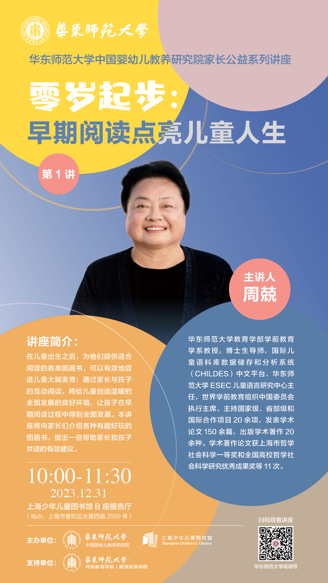 正值岁末,永利皇宫登录官网联合上海少年儿童图书馆以“婴幼儿教养”为主题推出了十余场高端公益讲座,系列讲座今年年末启动,并持续覆盖2024年全年。组织策划公益讲座的是永利皇宫登录官网今年新成立的中国婴幼儿教养研究院,讲座汇聚教育学、医学、发展心理学、营养学等多个专业领域的国内知名学者,共同为“最柔软群体”的健康成长支招。