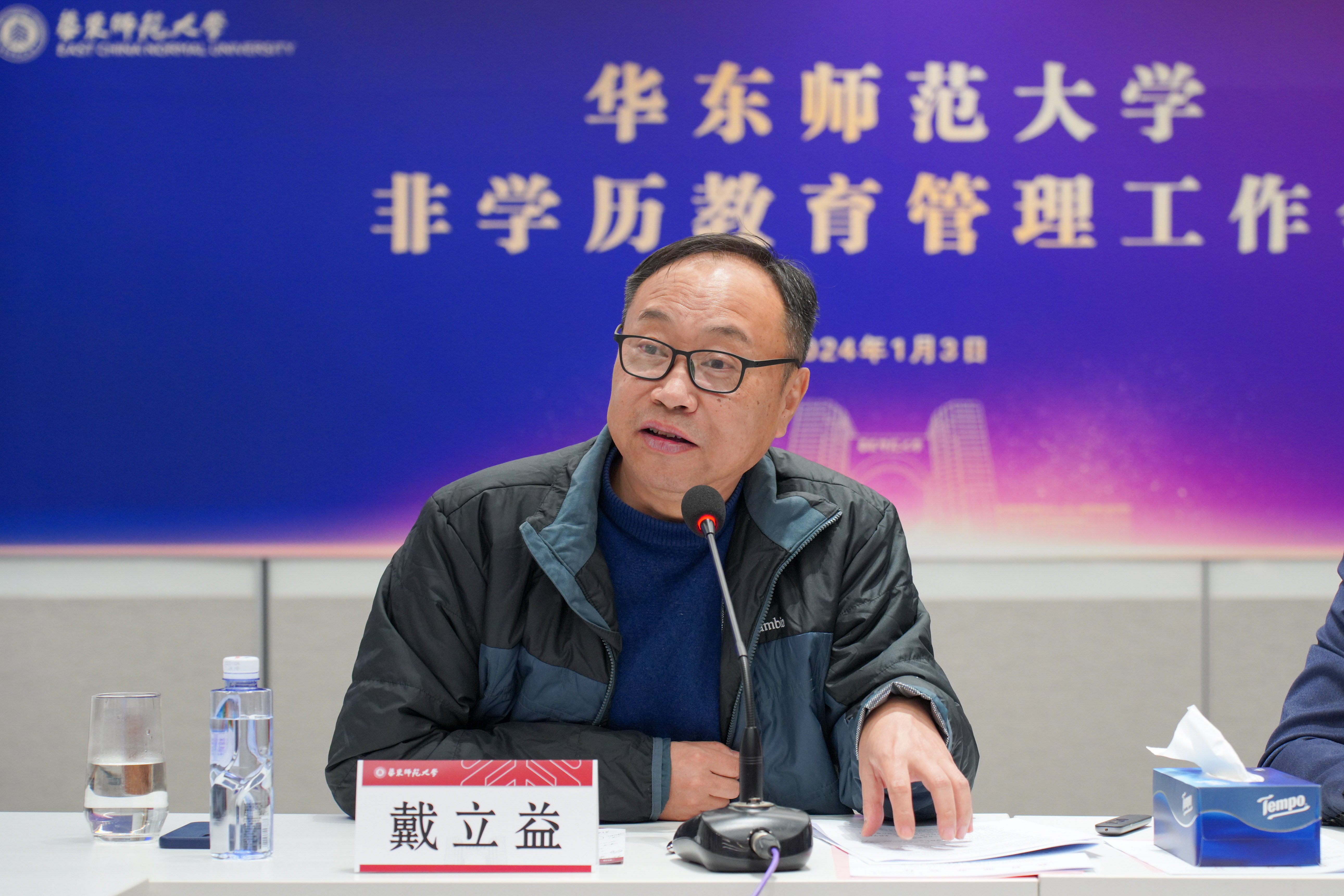 最后,戴立益作总结讲话。他肯定了近5年以来全校各部门和办学单位共同努力取得的工作成效,非学历教育工作大有可为。他强调,非学历教育工作必须规范运行,在管理机制上保证归口管理为原则,坚持管办分离,层层审核。强化基层党组织政治把关作用,严格执行“三重一大”决策程序。培训项目专项管理,形成追责制度。办学单位对标对表教育部规定严格流程管理,压实责任。各单位在非学历教育工作中要坚守意识形态和安全稳定底线。他提出,非学历教育工作要提高政治站位,依照学校第十四次党代会要求,以服务党和国家事业发展战略需求为使命,发挥学校教师教育领先、多学科协同发展的办学特色,集众智、聚众力、全力做好各项培训工作。非学历教育工作要勇于创新开拓,依托学校科研优势,加强研究,以高水平研究引领高质量培训,创新形式和内容,推动数智化与培训的深度融合,主动应对AI对培训的冲击,努力开辟新领域、新赛道,形成一批在全国有影响力的非学历教育高端品牌。