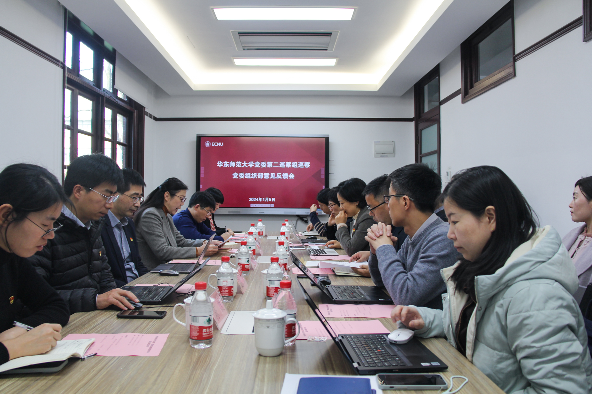 校党委常委、组织部部长、巡察办副主任朱军文,校纪委副书记、巡察办副主任俞黎阳,巡察办副主任卢蓓蓉分别出席反馈会。各巡察组成员、被巡察单位全体人员参加了反馈会。