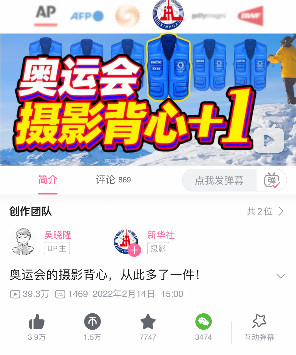 2022年北京冬奥会期间,他与新华社合作制作了关于奥运摄影的主题短视频,该片深入讲述了新华社摄影部为争取进入奥运会赛事内场拍摄所付出的长年努力和最终的成功,展示了摄影师背后的辛勤付出和对摄影艺术的执着追求,也让公众更加深刻地理解了摄影在记录历史、传播文化中的重要作用。视频播放量近40万次,并收获了众多观众的点赞和好评。