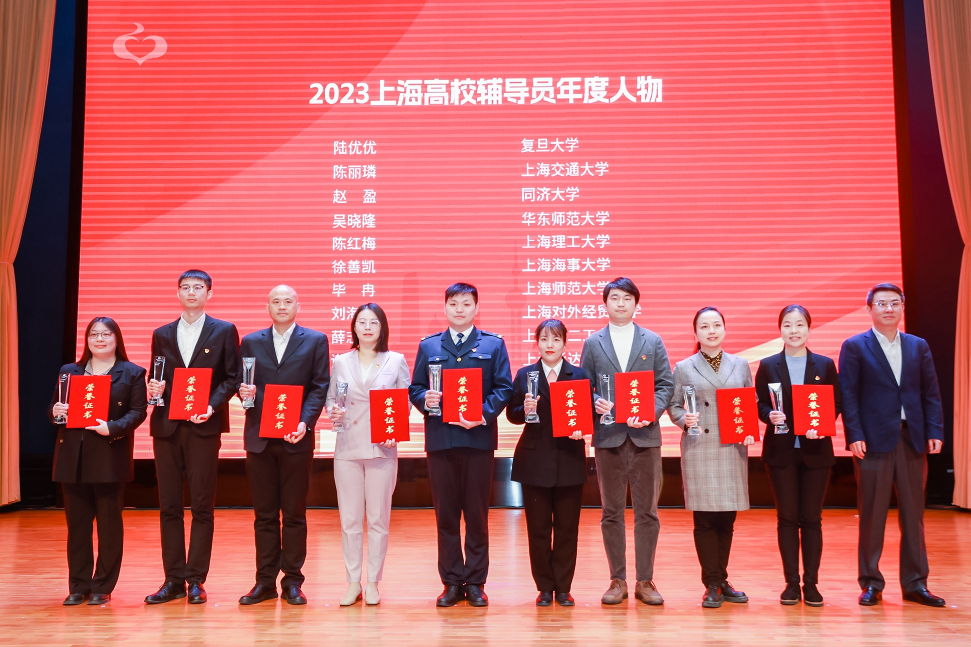 2023上海高校辅导员年度人物吴晓隆(右四)领奖现场