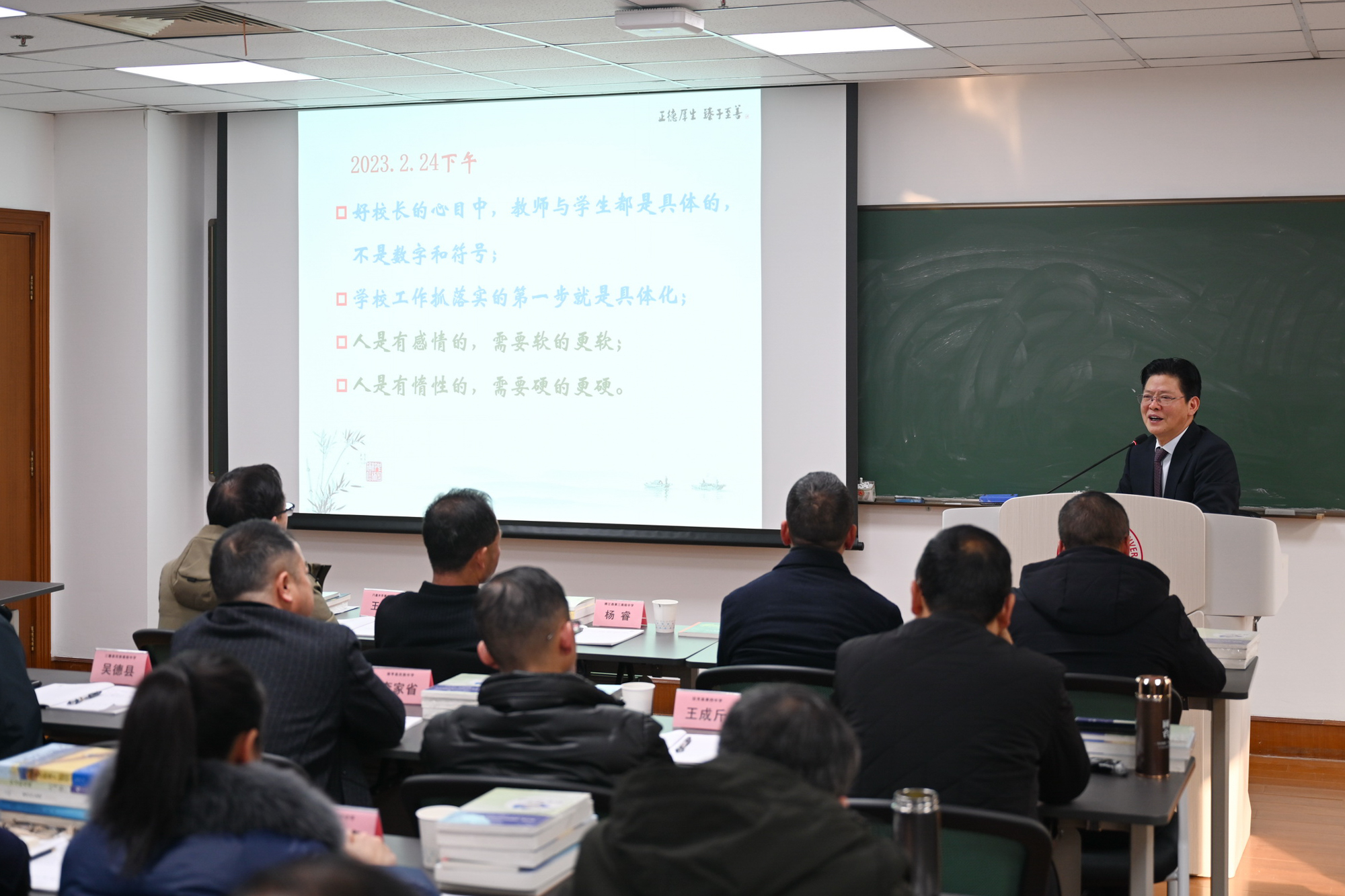 为深入学习习近平总书记关于教育的重要论述,贯彻落实《国家乡村振兴重点帮扶县教育人才“组团式”帮扶工作方案》和《教育部办公厅关于做好国家乡村振兴重点帮扶县教育人才“组团式”帮扶工作的通知》精神,巩固提升教育脱贫攻坚成果,服务乡村振兴和人才发展战略,落实“强县中”计划实施,受贵州省教育厅委托,华东师大中学校长培训中心于2024年1月3日至14日举办贵州省“组团式”帮扶学校高质量发展专题培训班(一期、二期),100名来自贵州省县中的校党委书记、校长参加培训。