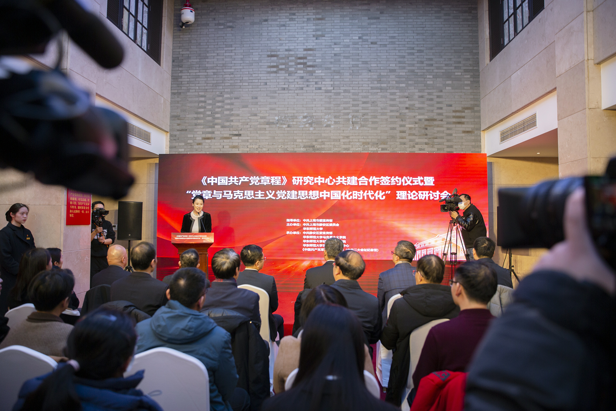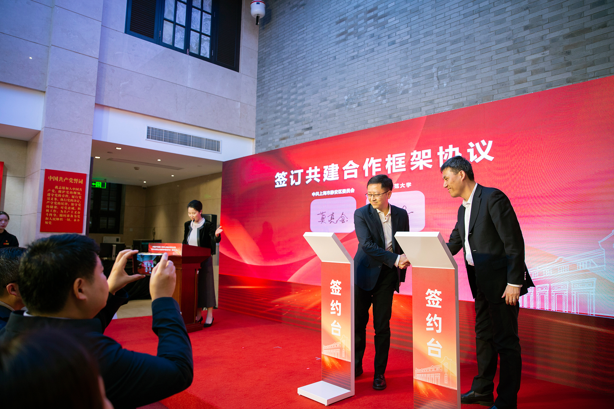 1月16日下午,在中共二大会址纪念馆,华东师大与静安区签署共建合作框架协议,区校联手推进红色文化建设,共建《中国共产党章程》研究中心,共同擦亮上海作为党的诞生地和初心始发地品牌。