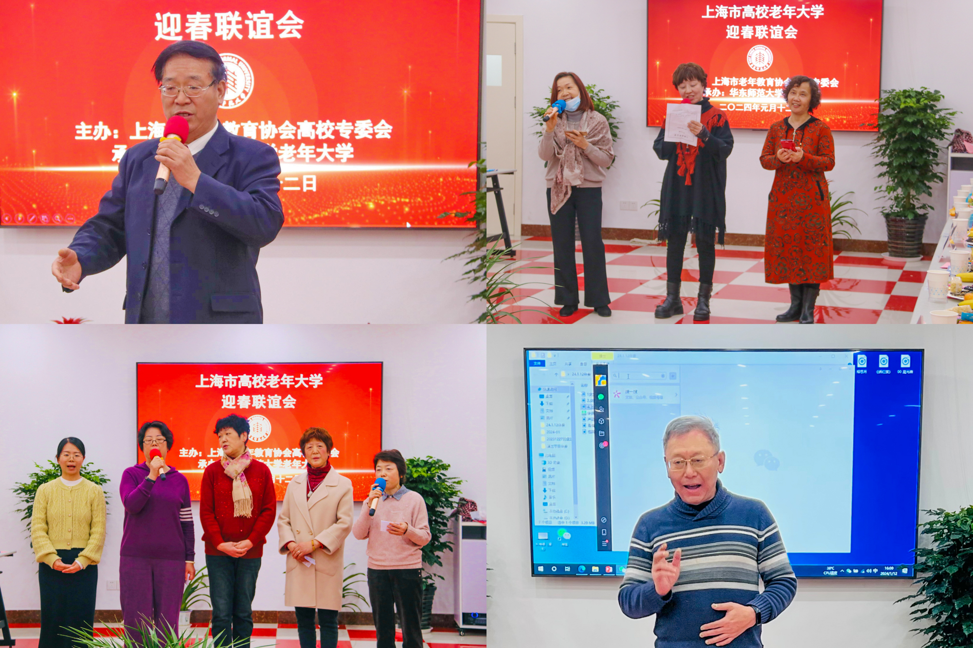为加强上海高校老年大学的校际交流、推进上海高校老年教育发展,上海老年教育协会高校专委会主任单位华东师大老年大学于1月12日组织举办了“上海市高校老年大学迎春联谊会”。上海市老年教育协会会长庄俭,上海老年大学常务副校长、党支部书记彭海虹,上海师范大学老年大学校长黄刚,以及来自永利皇宫登录官网、上海交通大学、复旦大学、同济大学、上海师范大学、华东理工大学、东华大学、上海大学、上海财大、上海电力、上海中医大等11所高校老年大学的校长和同仁共50余人参加活动。联谊会由上海市老年教育协会常务理事、高校专业委员会主任、华东师大老年大学常务副校长裴建华主持。