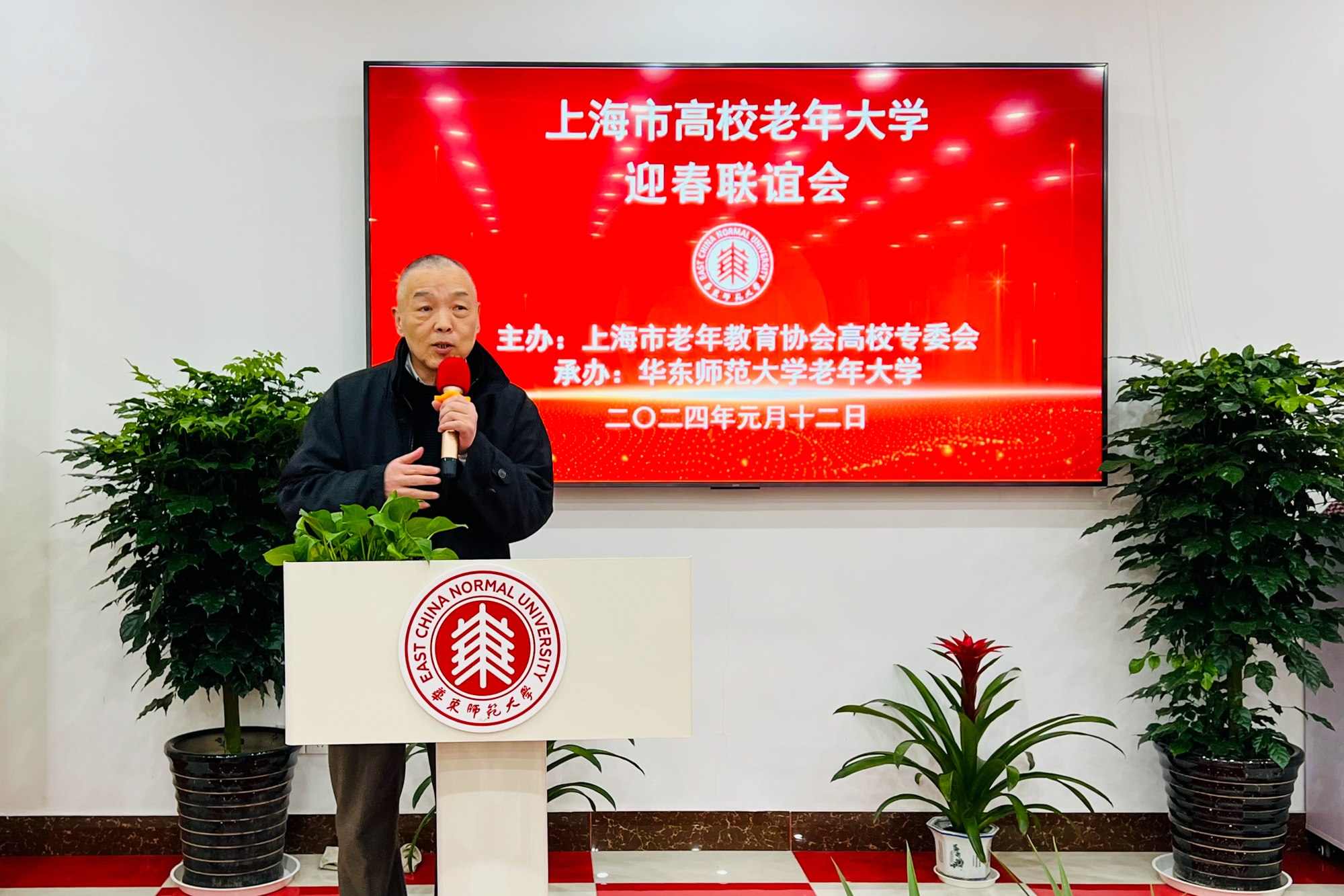 黄刚在致辞中感谢华东师大老年大学精心筹备了久违四年的迎春联谊会,上海高校老年大学的良好传统得以恢复和延续。华东师大接任上海高校老年大学专委会主任单位以来,活动连连、面貌焕然一新,赢得了大家的广泛赞誉。这次联谊会为同仁们提供了一个难得的机会,可以畅叙友情、相互交流、切磋探讨、取长补短,对推进共同事业的发展起到积极推进作用。