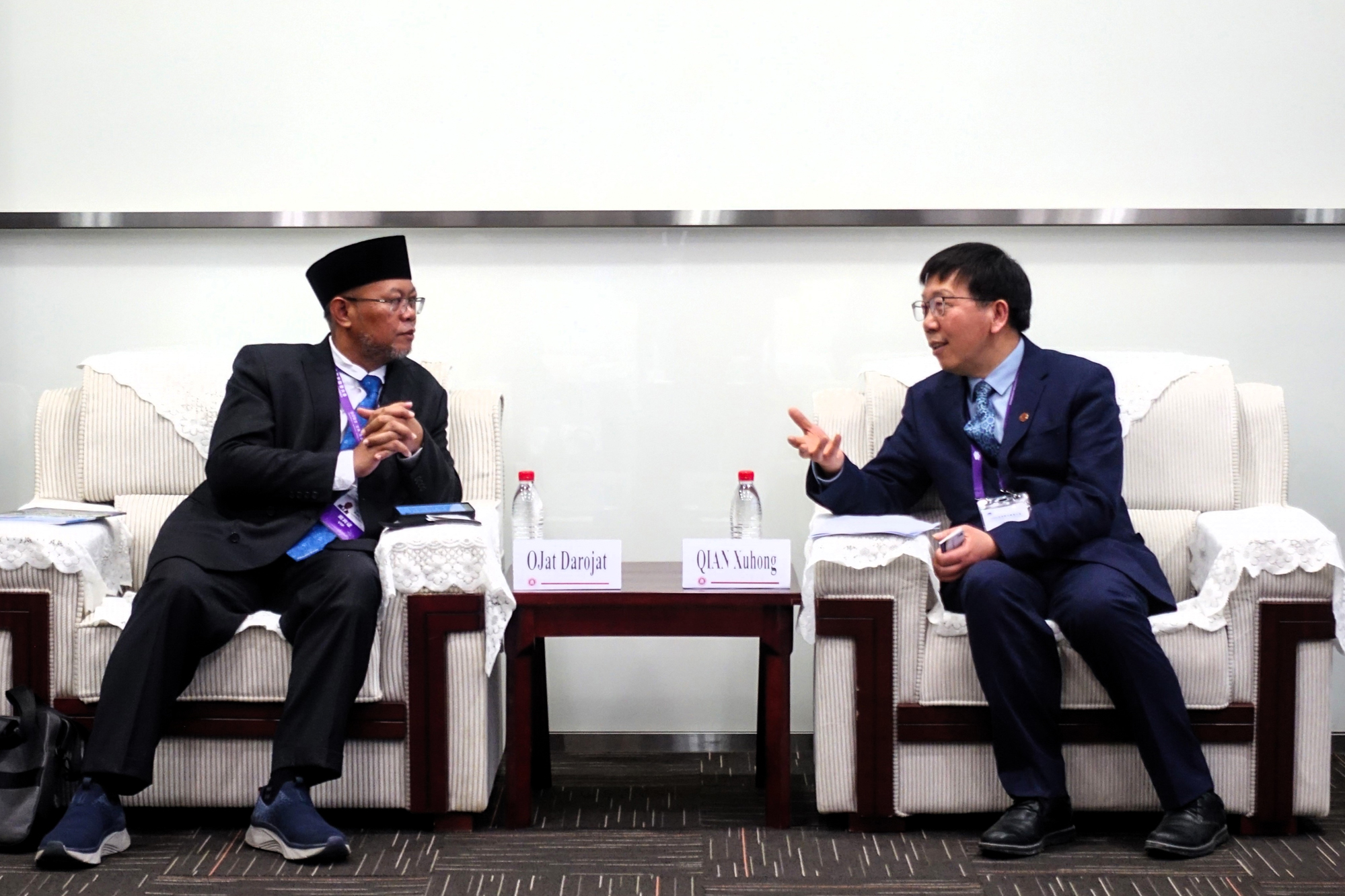 华东师大校长钱旭红院士与亚洲开放大学协会主席、印度尼西亚特布卡大学校长Ojat Darojat会面交流