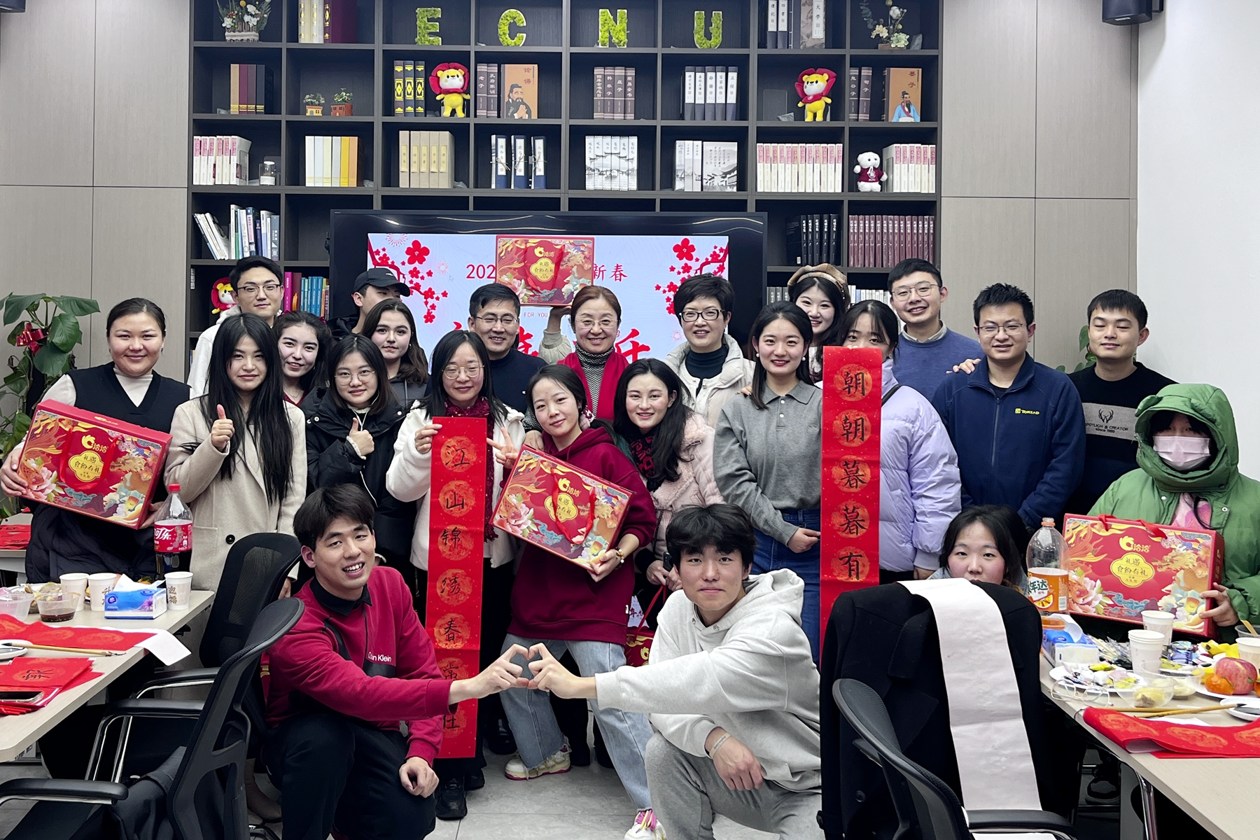 为营造学生社区积极向上、温馨有爱的节日氛围,让留校学生感受到“年”的喜庆与“家”的温暖,孟宪承书院举行了“龙腾盛世 新春同乐”孟院留校师生新春同乐会。飞花令、猜字谜、写书法、包饺子......在精彩纷呈的传统文化和习俗体验中,师生们欢聚一堂,其乐融融,期盼美好,共赴卓越。老师们为留校学生送上问候与祝福,勉励同学们在新的一年坚守初心,奋发有为。
