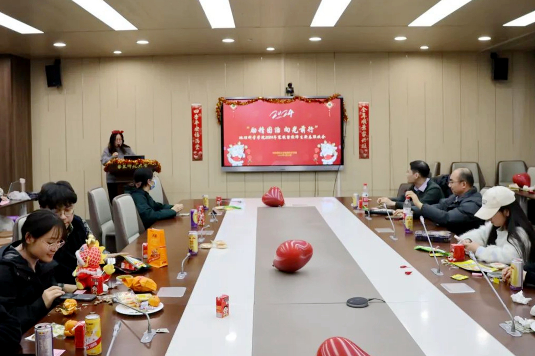 “励精图治 向光前行”地理科学学院寒假留校师生新春茶话会上,学院教师与40余名留校学生参与活动。新春至,留校师生团聚一堂,聚焦“三大卓越工程”“五个一流行动计划”,畅谈奋斗目标,共同许下美好愿望。