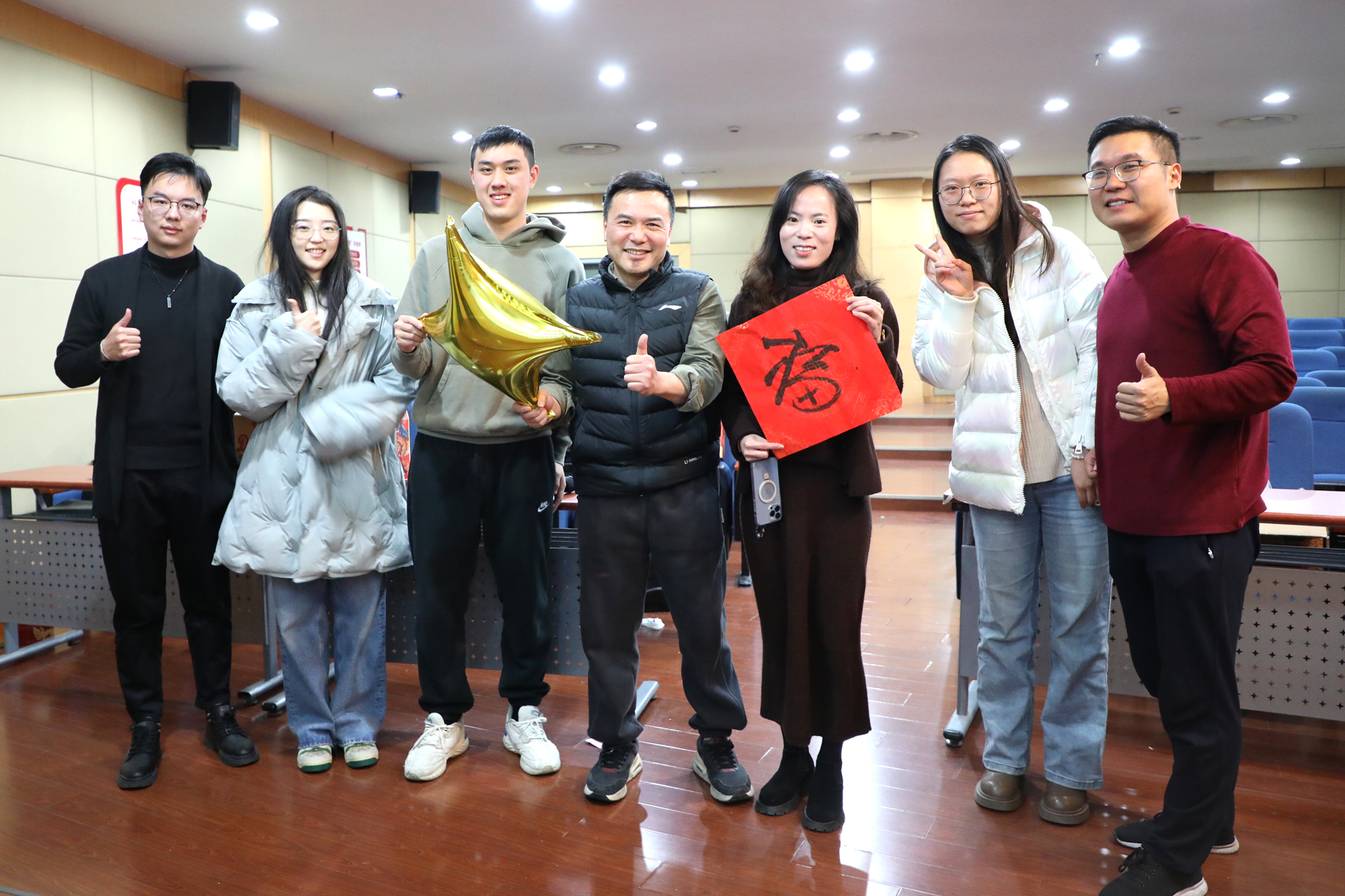 为丰富留校学生寒假生活,让同学们在校暖心过年,物理与电子科学学院举办寒假留校学生同乐会。师生们展才华、同游戏,话新年、传情谊。活动内容丰富多彩,有“拟声猜词”“首字母组词”等趣味游戏,还有歌曲串烧等精彩环节。师生还一起写春联、福字,大家以笔寄意,以字传情,表达着对龙年的美好愿景。