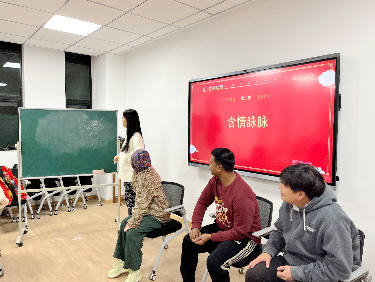 2024年“哲学系迎新师生茶话会”暖意融融,热闹非凡。寒假留校过年的中外学生和哲学系教师共吃团圆饭、做游戏、制作灯笼,喜迎新春佳节的到来。茶话会上,师生进行了“你画我猜”小游戏,各组“灵魂画手”大开脑洞,现场欢乐不断。猜名言环节中,师生对哲学家的名言信手拈来,如数家珍。师生们纷纷表示,在校过年也感受到了家的温馨与幸福。