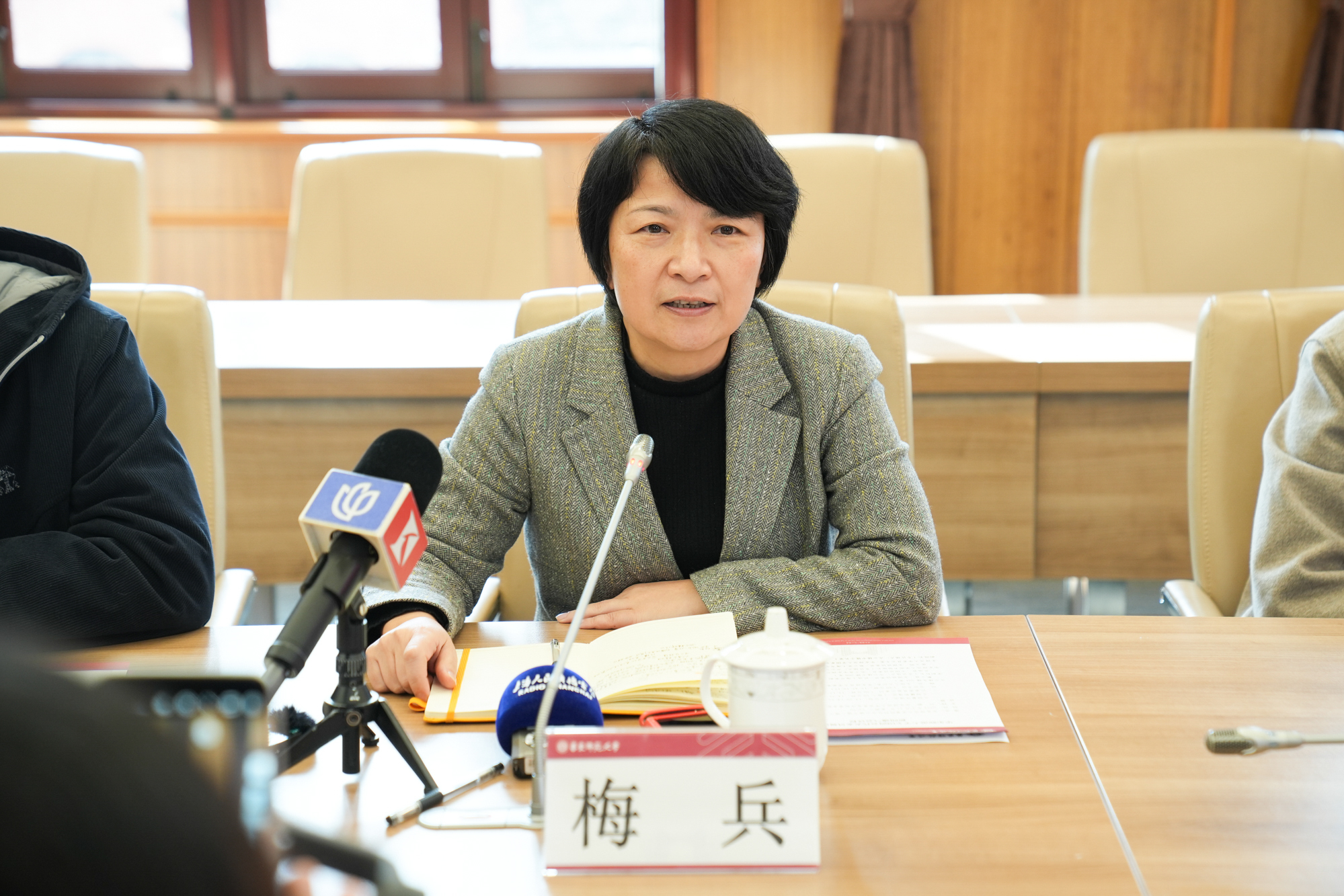 校党委常委、统战部部长、学校办公室主任张惠虹介绍了学校全国人大代表、全国政协委员建言献策、参政议政的整体情况。