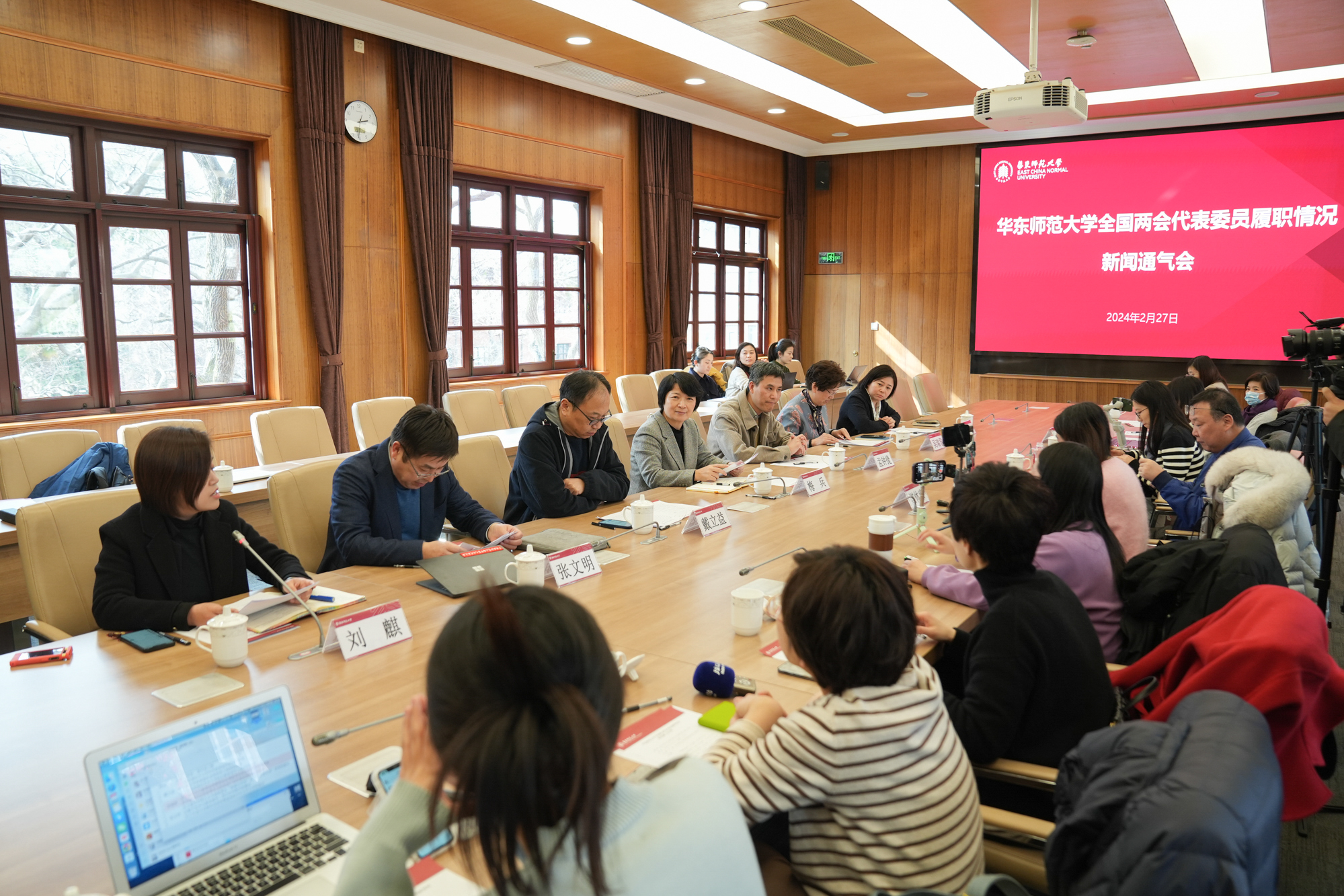 来自报社、电视台、网站、客户端等二十多家新闻单位的媒体记者与会,对华东师大4位全国人大代表、全国政协委员的建议和提案情况进行了现场采访和交流。