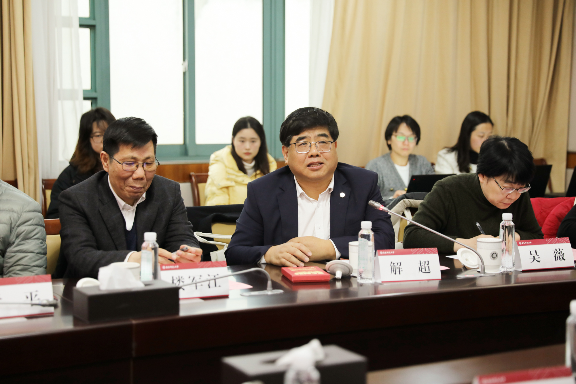 2月21日,作为华东师大第36届大学生思想政治工作理论研讨会暨寒假务虚会的平行论坛之一,以“华东师大学生工作的传承与创新”为主题的华东师大学(研)工部长咨询研讨会在普陀校区召开。校党委原副书记杜公卓,上海市社联副主席、市中共党史学会会长忻平,上海开放大学党委书记楼军江,上海师范大学党委书记林在勇,上海立信会计金融学院党委书记解超等校原学(研)工部长应邀参加研讨。此外,曾担任校学工部门负责人的华东师大副校长程静,公共管理学院高向东教授,孟宪承书院党委书记兼院长吴薇,地理科学学院刘敏教授,机关党委书记、校友会副会长兼秘书长任开蕾,政治与国际关系学院党委书记潘靓,设计学院党委书记俞世恩参加了会议。校党委书记梅兵出席活动,会议由校党委副书记、副校长顾红亮主持。党委宣传部常务副部长刘麒、党委学生(研究生)工作部部长赵健参加座谈会。