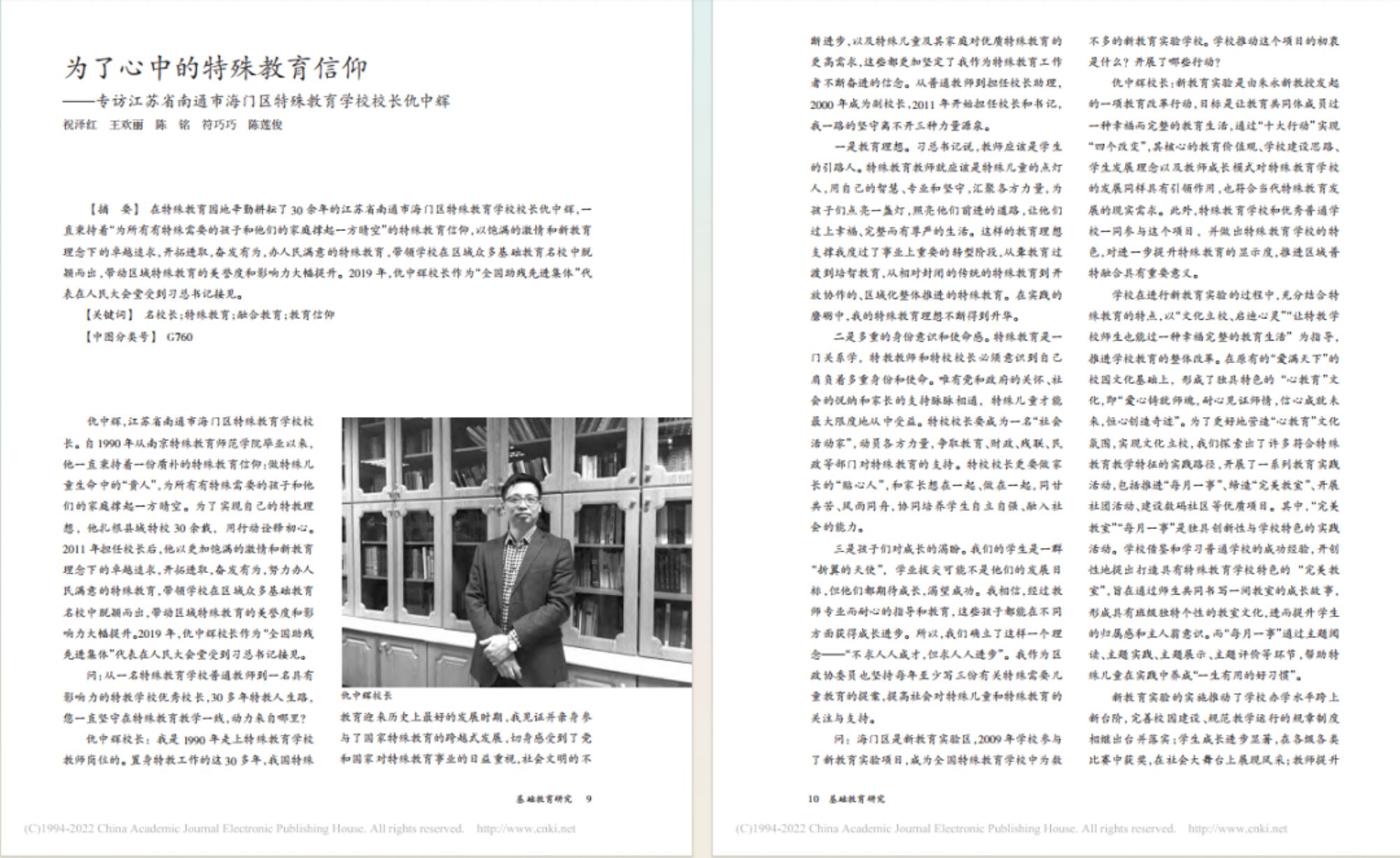 符巧巧等人撰写访谈文章《为了心中的特殊教育信仰》被《现代特殊教育》期刊2022年第5期载录(有删节)
