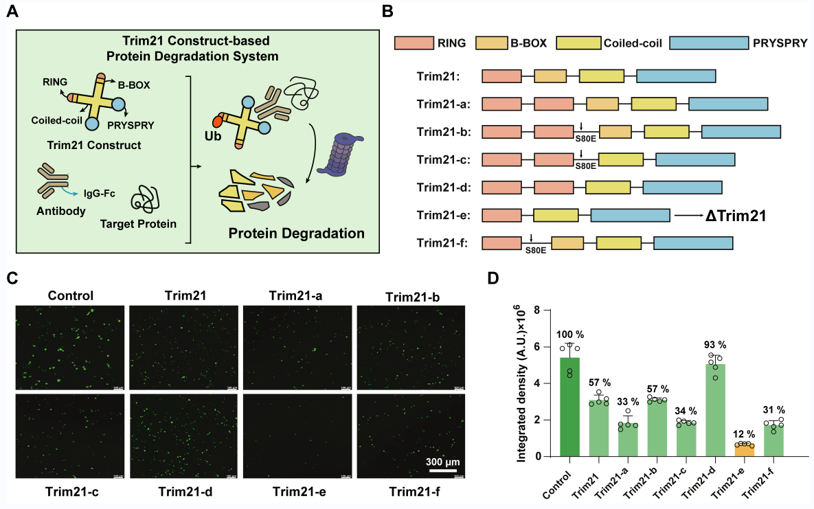 图2 设计、构建基于ΔTrim21的靶向蛋白降解系统