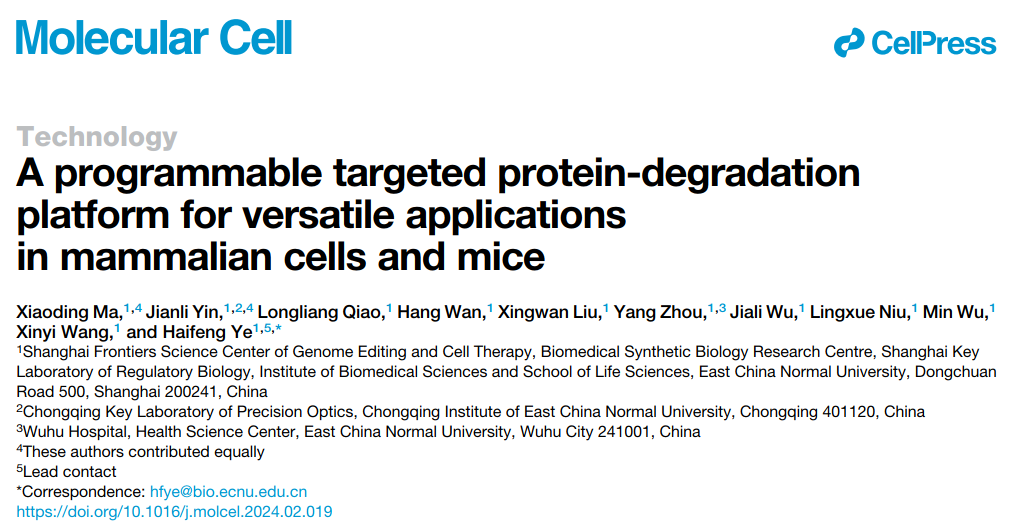 Molecular Cell 刊发叶海峰研究团队科研成果