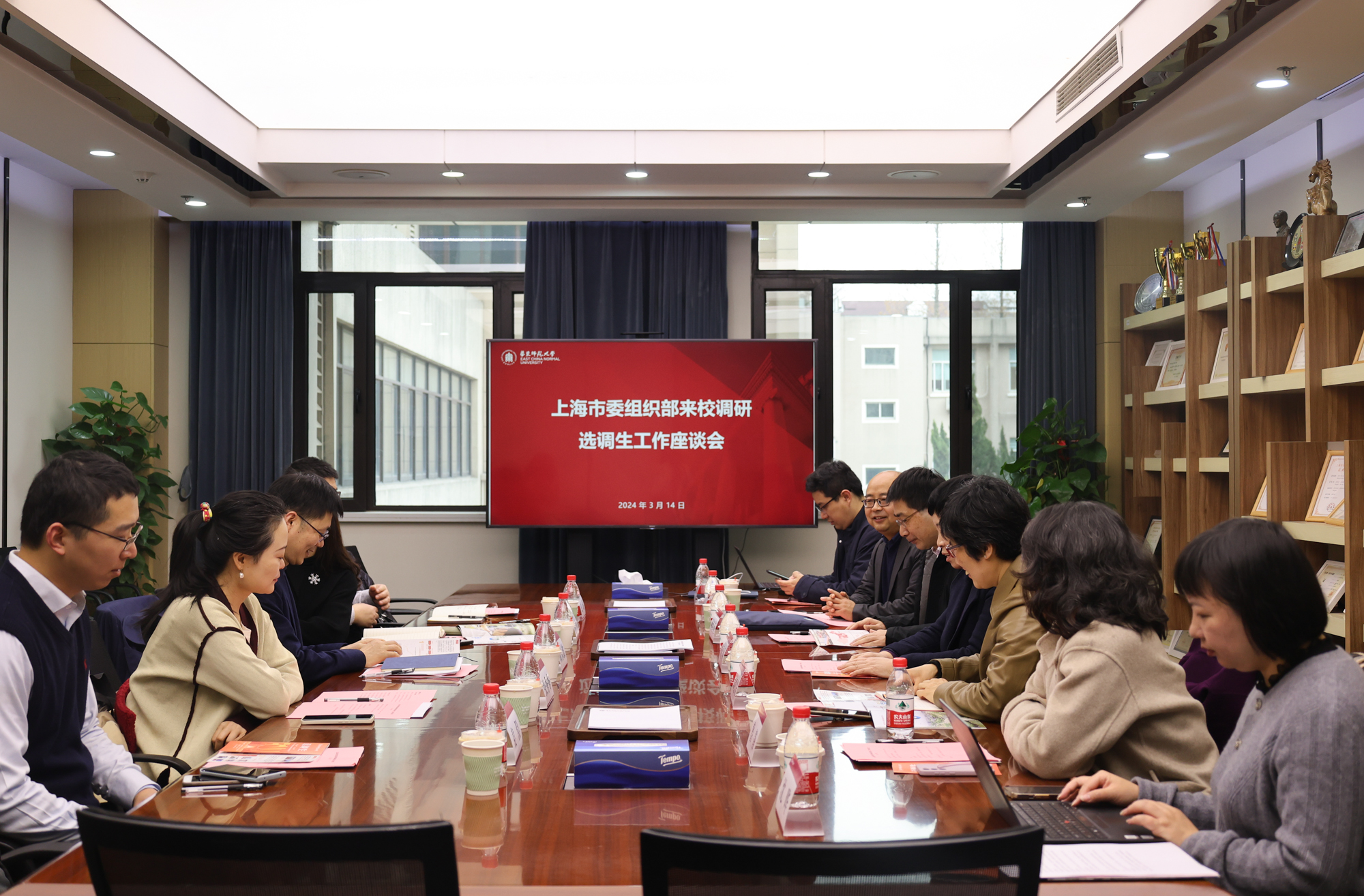 为调研评估政策执行,密切供需对接,更好地推进选调生工作,3月14日上午,上海市委组织部干部规划办主任顾永波、公务员二处处长沈文等一行来华东师大就选调生工作进行专项调研。校党委副书记、副校长顾红亮,校学生工作委员会副主任、校党委原副书记杨昌利,党委学生(研究生)工作部、校党委组织部、选调生工作办公室、政治与国际关系学院、教育学部等单位负责人参会。党委学生(研究生)工作部部长、选调生工作办公室主任赵健主持会议。
