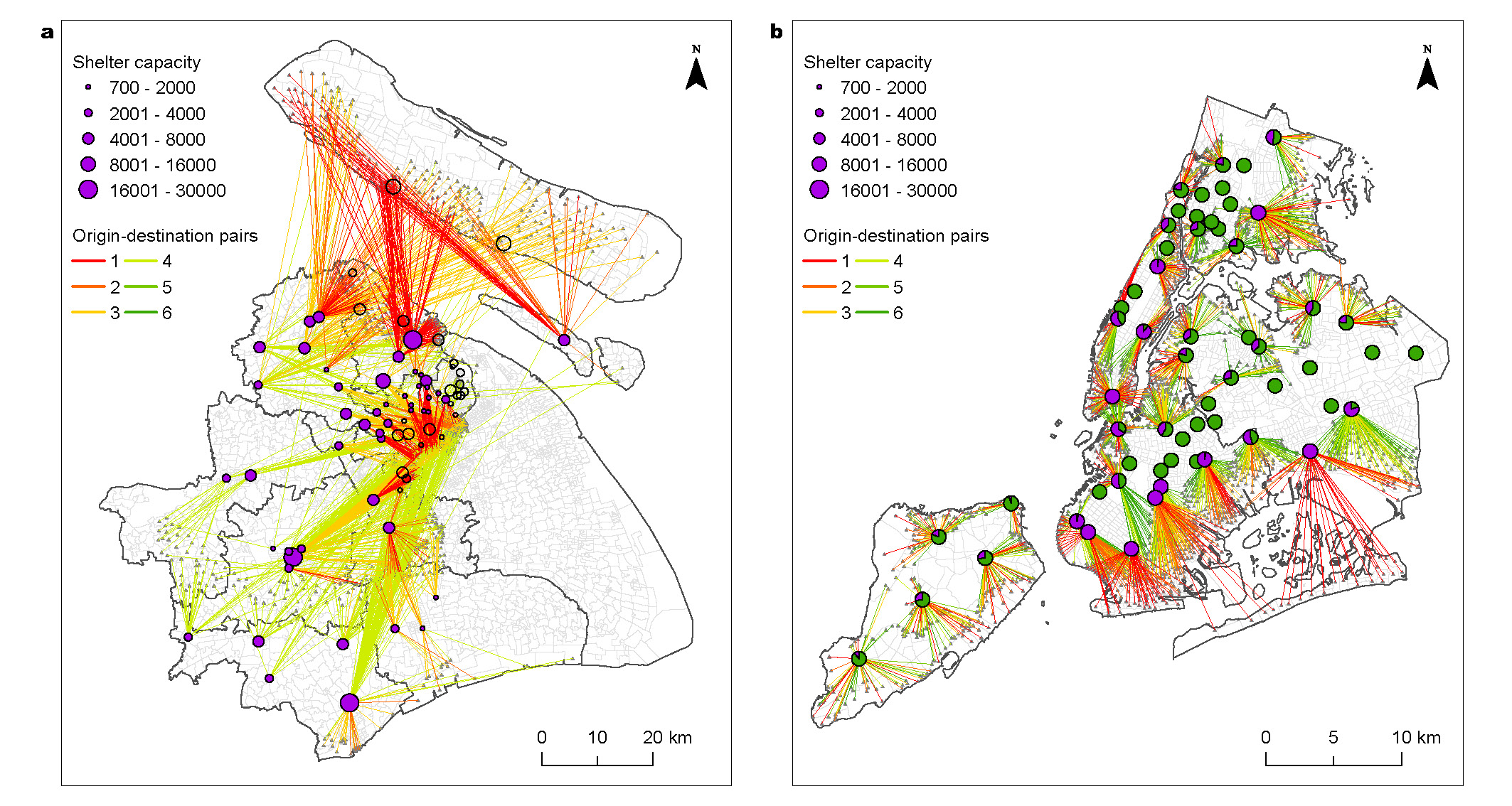 图2 上海和纽约市风暴洪水人群应急疏散O-D分配方案