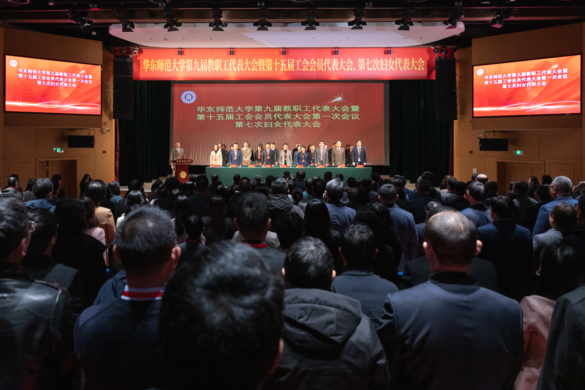 3月20日下午,在庄严的国歌声中,永利皇宫登录官网第九届教职工代表大会暨第十五届工会会员代表大会第一次会议、第七次妇女代表大会在普陀校区思群堂开幕。上海市教卫工作党委副书记、市教育工会主席、市教育系统妇工委主任张艳萍,校领导梅兵、钱旭红、顾红亮、孟钟捷、戴立益、雷启立、施国跃、程静,以及285名代表、26名列席代表出席大会。大会开幕式由校党委副书记孟钟捷主持。