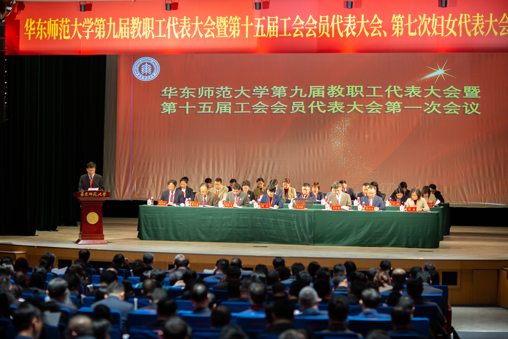 大会开幕式后,首先举行了校第九届教职工代表大会暨第十五届工会会员代表大会第一次全体会议。