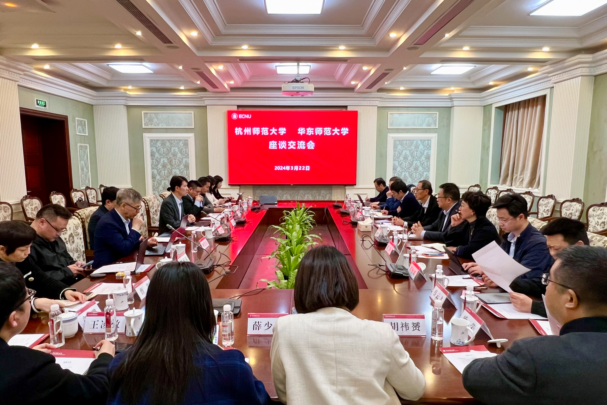 3月22日,杭州师范大学副校长胡华、张杭君一行访问华东师大。校长助理兼研究生院常务副院长吴健与胡华、张杭君一行进行深入交流,学校办公室、国际合作与交流处、人事处、财务处、信息化治理办公室、基金会、国际教育中心、经济与管理学院、计算机科学与技术学院等单位负责人参加座谈。