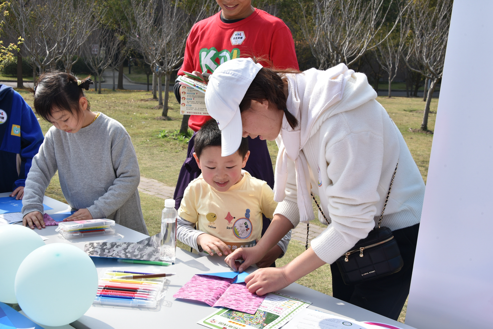 本次活动招募了30余名7-10岁儿童作为“小小志愿者”,在校园各个打卡点与孤独症小朋友一起互动游戏。这些“小小志愿者”不仅仅参与路线引导、游戏示范和后勤支持等志愿服务,更以实际行动厚植他们正确的价值观和社会责任感,也在他们幼小的心田里播下了爱心奉献、温暖社会的公益火种。