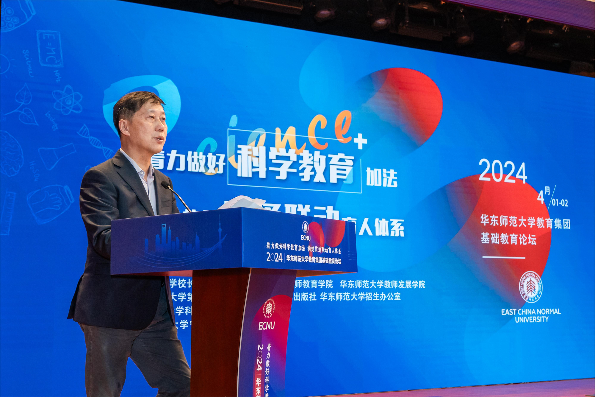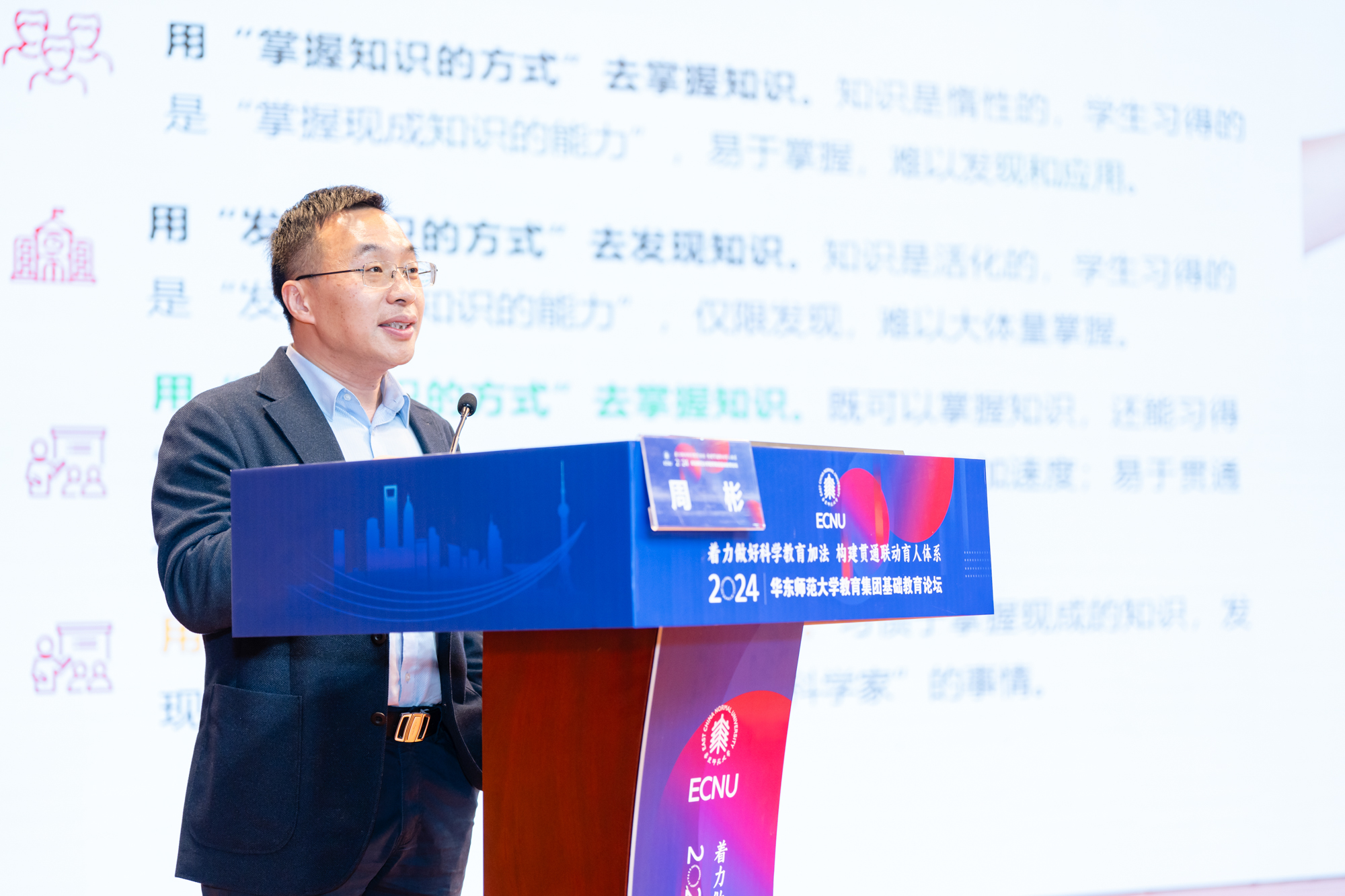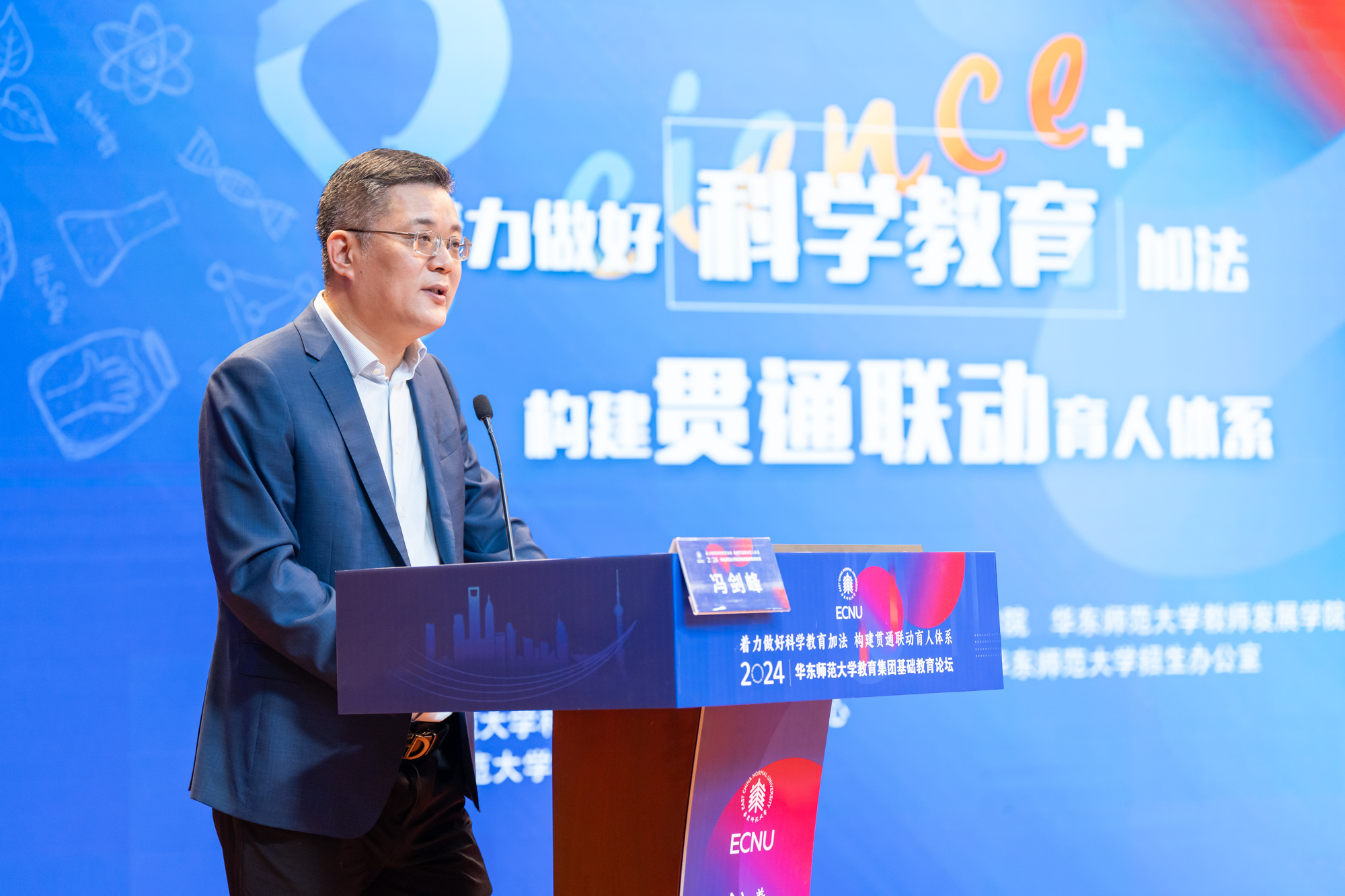 华东师大基终部副部长、教育集团副主任冯剑峰对本次论坛进行总结发言。他表示本次论坛议程紧凑、主题突出、报告密集、务实高效,为理解、学习、探讨科学教育提供了多维度的视角和多样化的实践。教育集团也将继续在丰富资源供给、提高服务品质、升级品牌活动上做“加法”,为学校办学的全环节、全链条、全流程发展提供全方位服务和强有力的支撑。