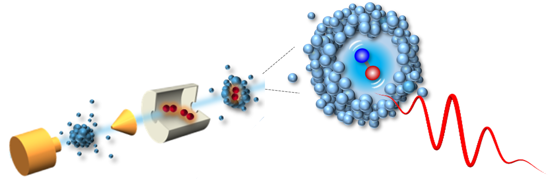 超流氦纳米液滴具有低温、零粘滞性、低极化率等特性,从而可以作为量子溶剂为分子与液相环境相互作用的研究提供理想的纳米反应容器。针对分子与液相环境相互作用时域动力学测量难题,吴健教授团队在国际上率先发展了超流氦纳米液滴冷分子动力学符合测量技术,利用超流氦纳米液滴俘获并冷却分子,结合电子-离子符合测量技术,从而研究分子与液相环境相互作用微观动力学。目前利用该技术,实验首次观测到D2分子在超流氦纳米液滴中可以实现和气相D2分子一样的无阻尼转动[Phys. Rev. Lett. 128, 243201(2022)],实验发现氦超流液相环境可以增强H2+化学键的断裂[Phys. Rev. Lett. 130, 033201(2023)];利用低温分子团簇获得相对确定的分子间距和明确的动力学时间起点,首次实现了 2 个H2分子反应产生 H3+这一自然界最简单的分子-分子间反应时域动力学直接观测,实现动力学有效调控[Nat. Chem. 15, 1229(2023)];实现从无机到有机的最简单双分子相互作用超快动力学时域观测与相干调控,在分子层面揭示星际化学双分子反应形成C-H键的微观机制[Nat. Commun. 15, 2854 (2024)]。