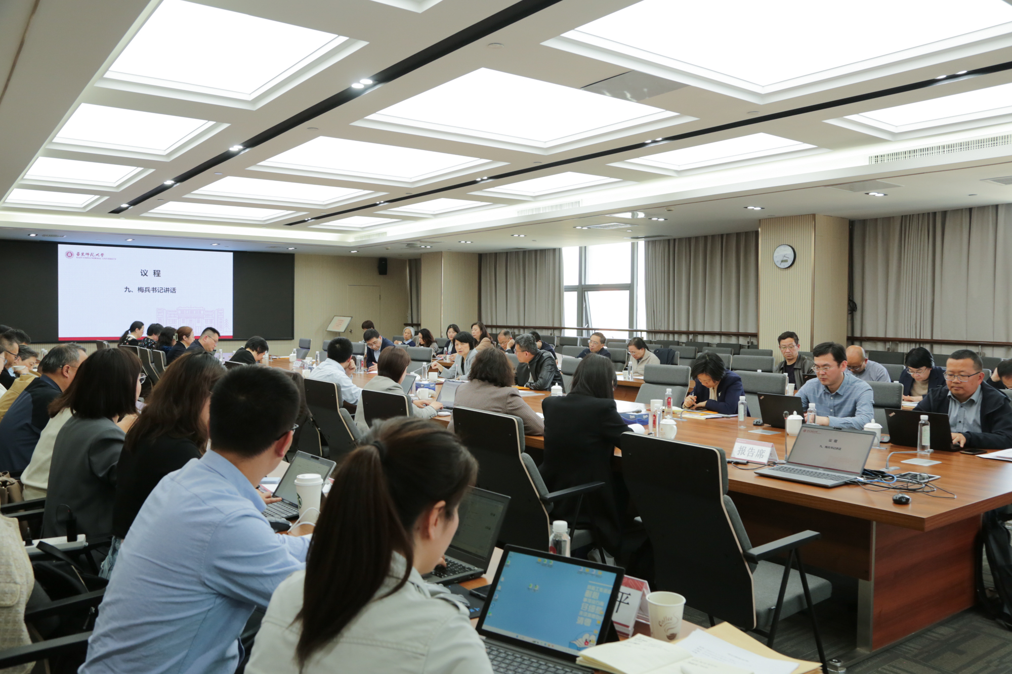 梅兵在讲话中表示,开学以来华东师大整体工作平稳。她结合当前形势和学校重点工作,指出要增强“强国建设、教育何为”的历史使命感,密切关注教育内外环境新变化,把握发展机遇,加强前瞻布局,不断在人才培养、科学研究、社会服务等方面取得新突破;要牢牢扛起全面从严治党主体责任,加强党建工作,以高质量党建引领助推各项事业高质量发展;要进一步提升应急处突能力,加强院系、部门协同处置能力,有效应对各类风险挑战、防范化解重大风险,为学校事业高质量发展保驾护航。