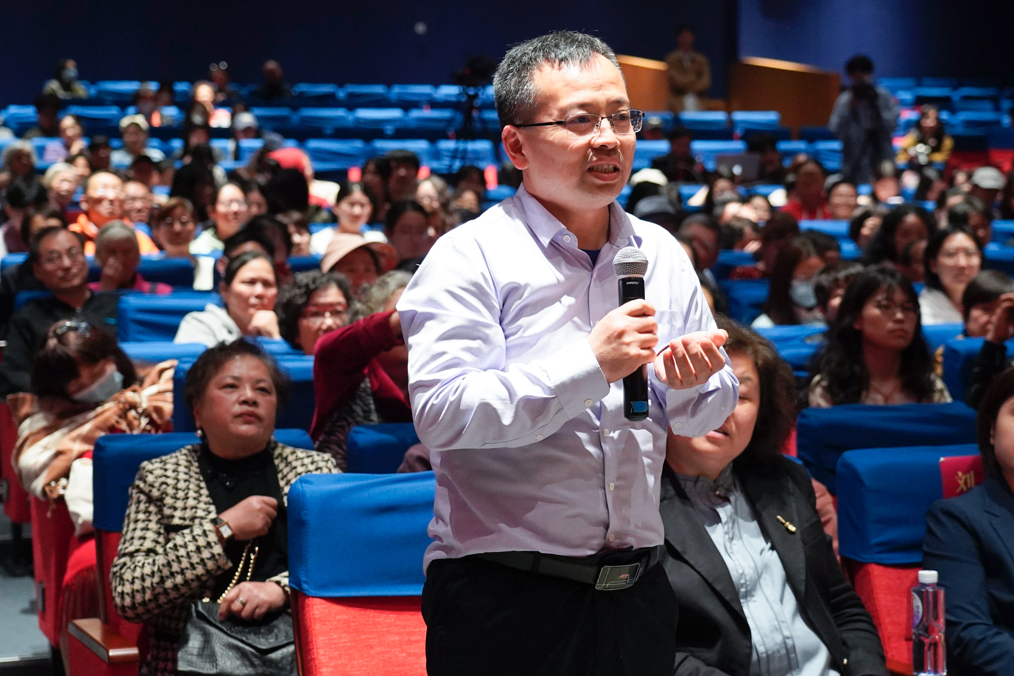 在交流环节,现场师生们积极发言,他们分享了对戏曲和电影的认识,并探讨了如何在民族艺术的传承中贡献自己的力量。师生们的热情参与不仅为对谈增添了浓厚的学术氛围,也展现了年轻一代对传统文化的热爱与传承的决心。