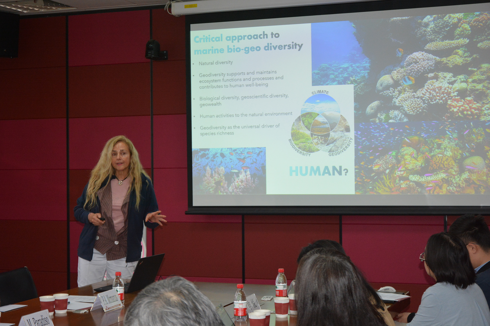 Maria Paradiso教授作了题为“评估人类海事活动对生物多样性之影响——以地中海航运为例(Assessing human maritime activities on biodiversity: The case of shipping in the Mediterranean)”的学术报告,关注海上运输发展与海洋生态系统的相互协调,提出了一套指标体系,从航行路线与船只特征、港口及其相关活动、海域战略重要性等方面系统评估和阐述海上运输对生物多样性的影响与作用机制。