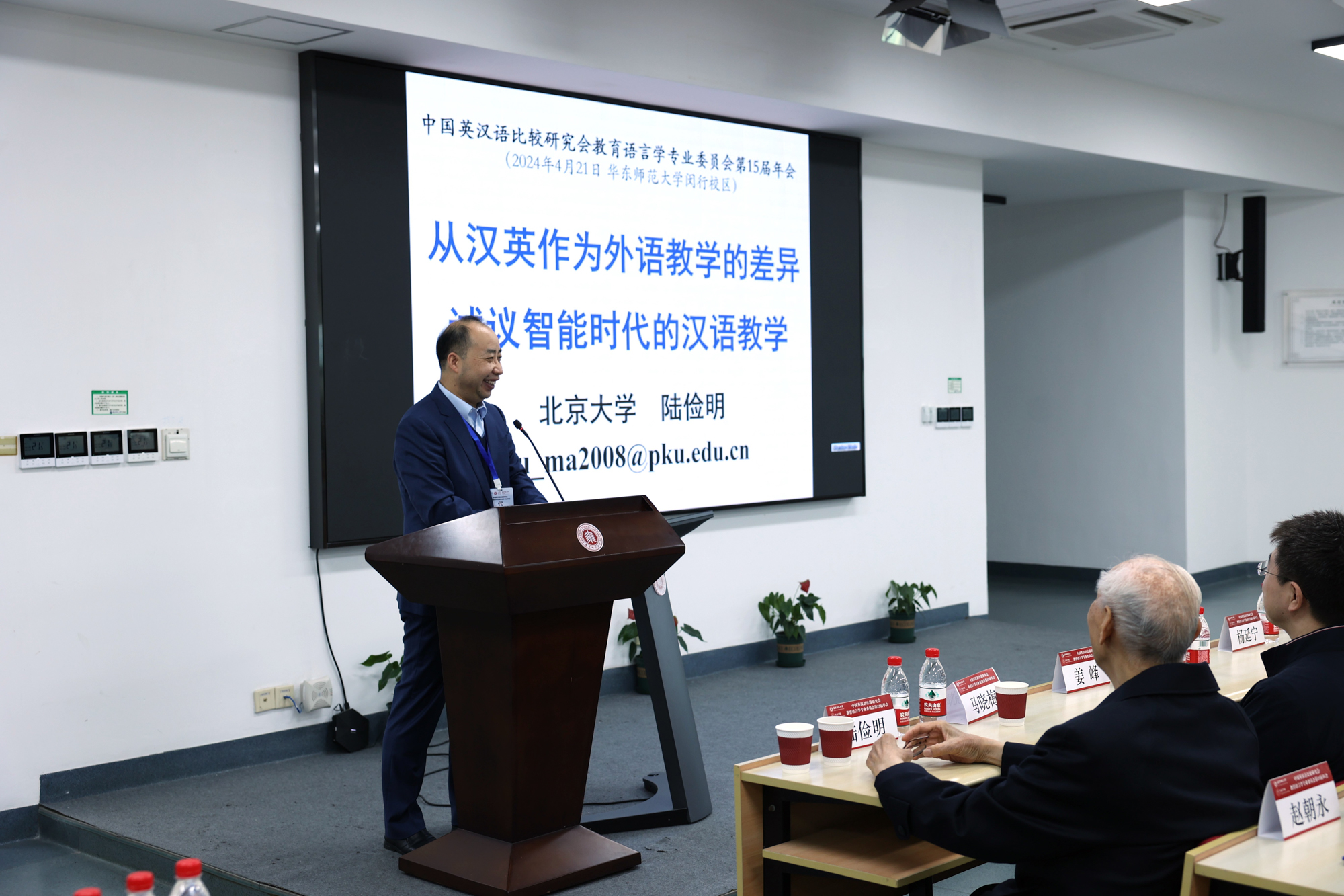 国家语委咨询委员会委员、国家语委语言文字标准审订委员会委员、世界汉语教学学会学术指导委员会名誉主任委员、北京大学陆俭明教授作报告