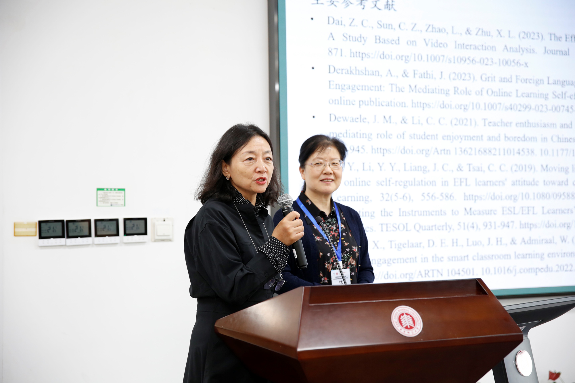 徐锦芬教授在报告“智能课堂下大学生英语自主学习策略、自我效能和学习投入的结构方程建模分析”中通过定量的方法揭示了学生在智能课堂中的自主学习策略、自我效能和学习投入三个变量之间的相互关系,为未来智能课堂环境中英语学习的教学实践和学术研究提供了宝贵的启示和理论支撑。报告由浙大城市学院王慧莉教授主持。