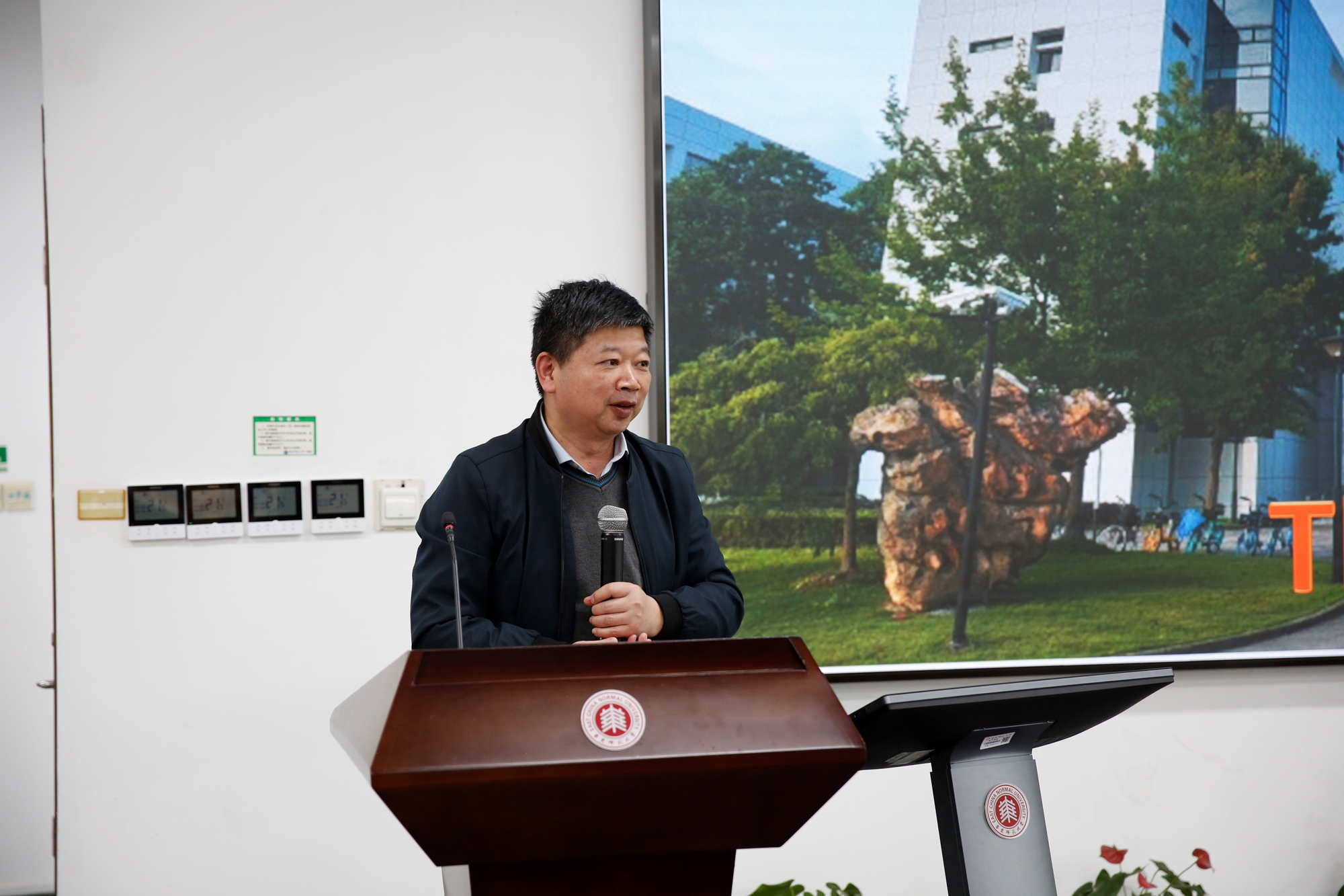 杨雪燕教授在报告“如何增强教师陈述的互动性——基于一项合作行动的研究”中从系统功能语言学视角出发,探讨一线英语教师在教育层面遇到的问题,并详细介绍了其所建构的“教师陈述”的互动模型。报告由上海电力大学潘卫民教授主持。
