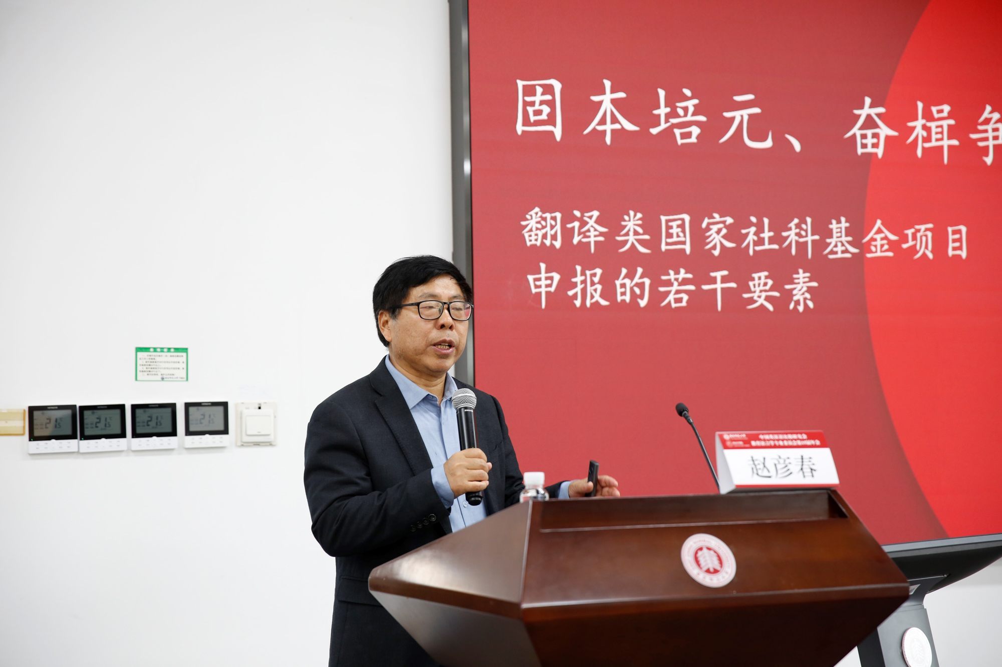 在专题发言中,赵彦春教授和兰天博士分别以“固本培元、奋楫争先——翻译类国家社科基金项目申报的若干要素”、 “中华文化走出去之中华学术外译项目研究”为主题,介绍了两大社科项目在申报过程中注意事项。两场报告由西安石油大学袁森教授主持。