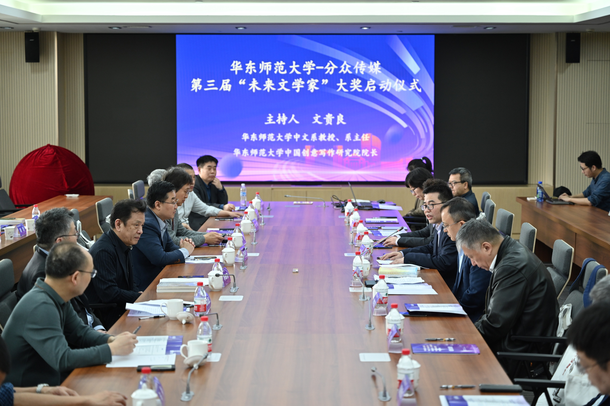 华东师大中文系系主任、中国创意写作研究院院长文贵良教授主持启动仪式