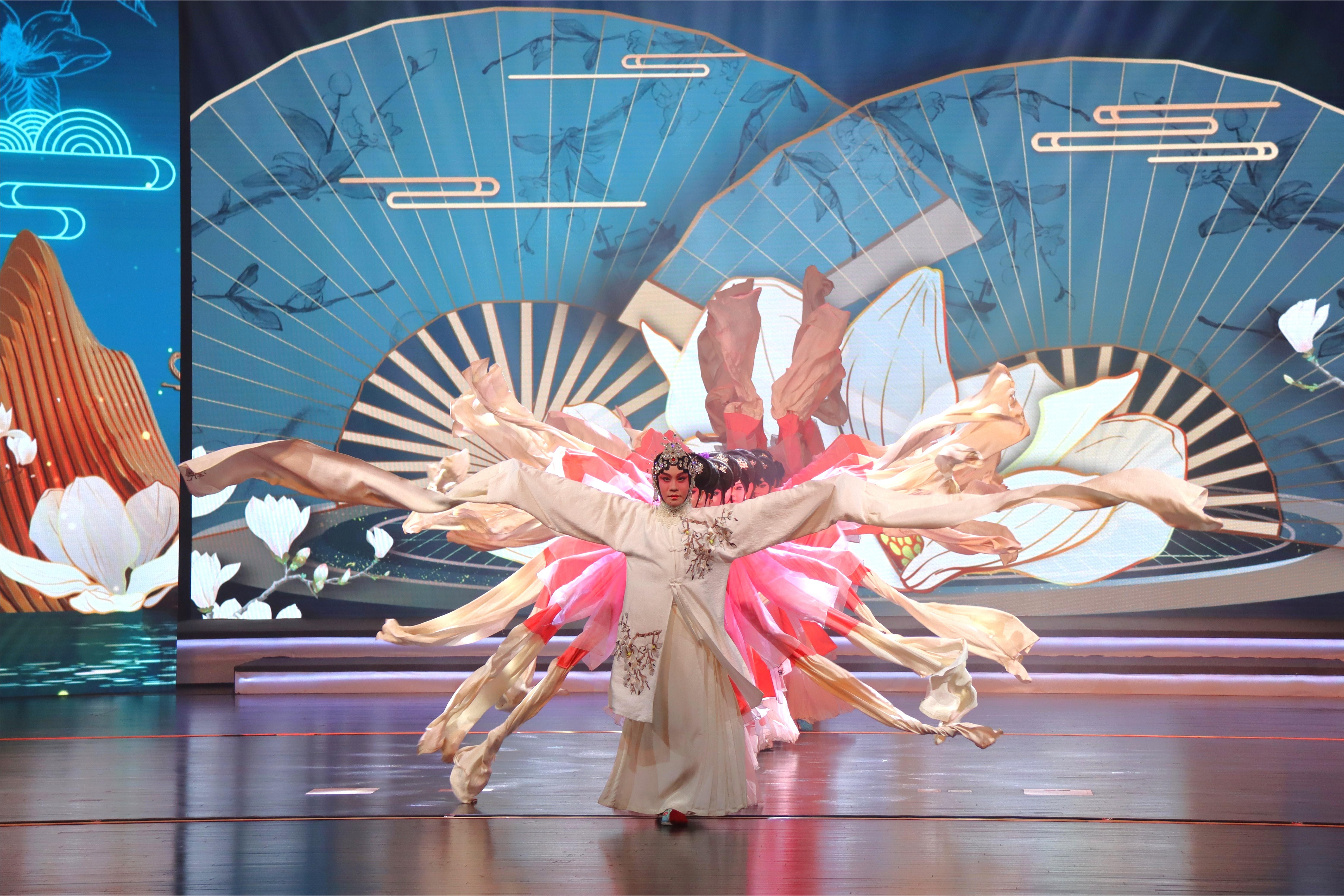 演出首先以《花开白玉兰》戏曲水袖表演开场,由上海戏剧学院附属戏曲学校教师牟元笛与学生一同演绎,他们在用肢体语言和戏曲水袖呈现出中华优秀传统文化的神、韵、美的同时,也为演出拉开了一道亮丽的帷幕。