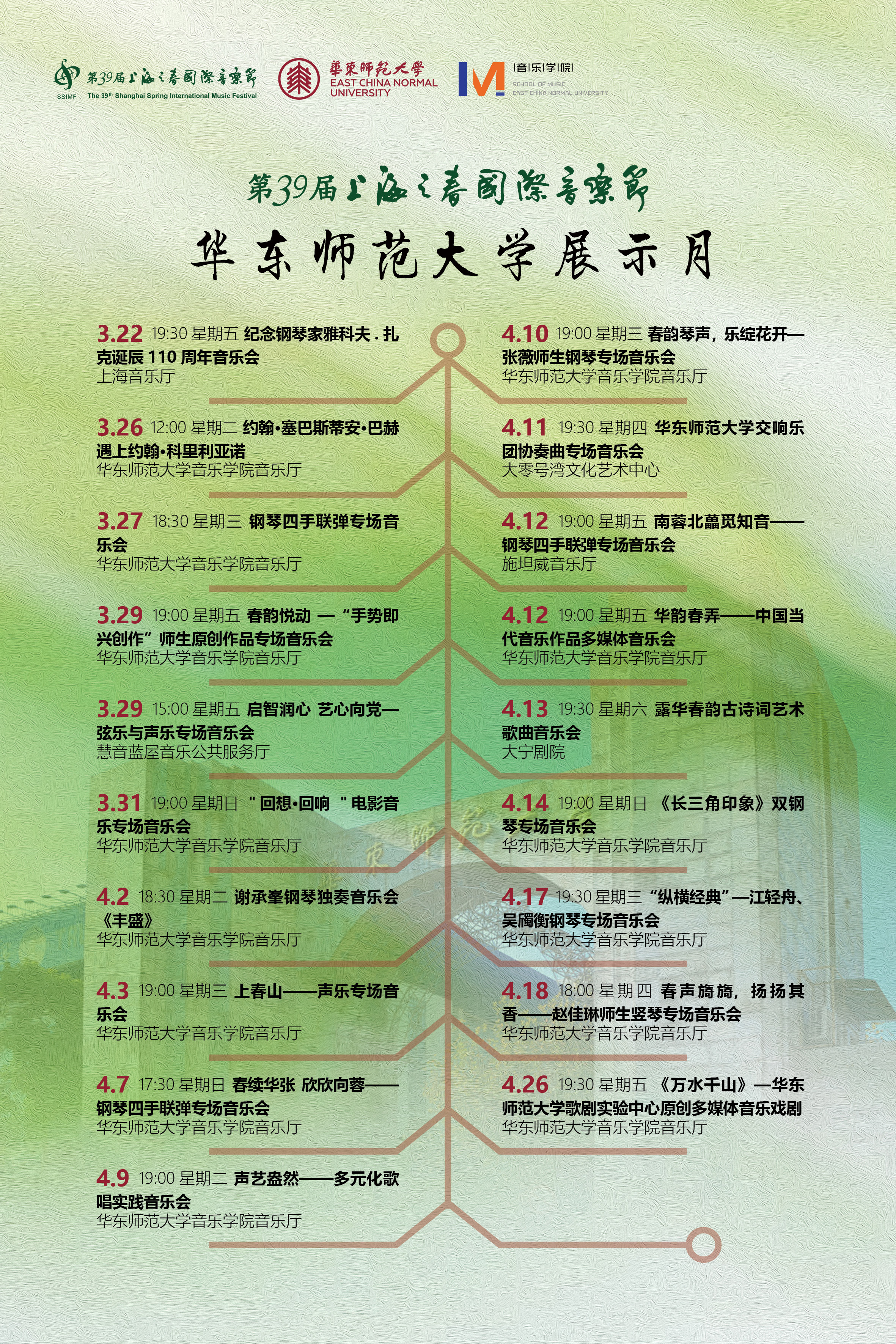 近日,备受瞩目的第39届上海之春国际音乐节圆满落下帷幕。永利皇宫登录官网音乐学院作为参演单位之一,参演活动数量创下历届之最。自3月22日至4月26日,共举办了近20场不同形式和主题的音乐会,作品既涵盖耳熟能详的中外经典曲目,也包括鸿蒙初辟的乐艺新探。在音乐节的前期筹备及举办期间,音乐学院积极配合演出准备、新闻宣传、氛围营造等工作,受到上海之春国际音乐节组委会的高度认可。