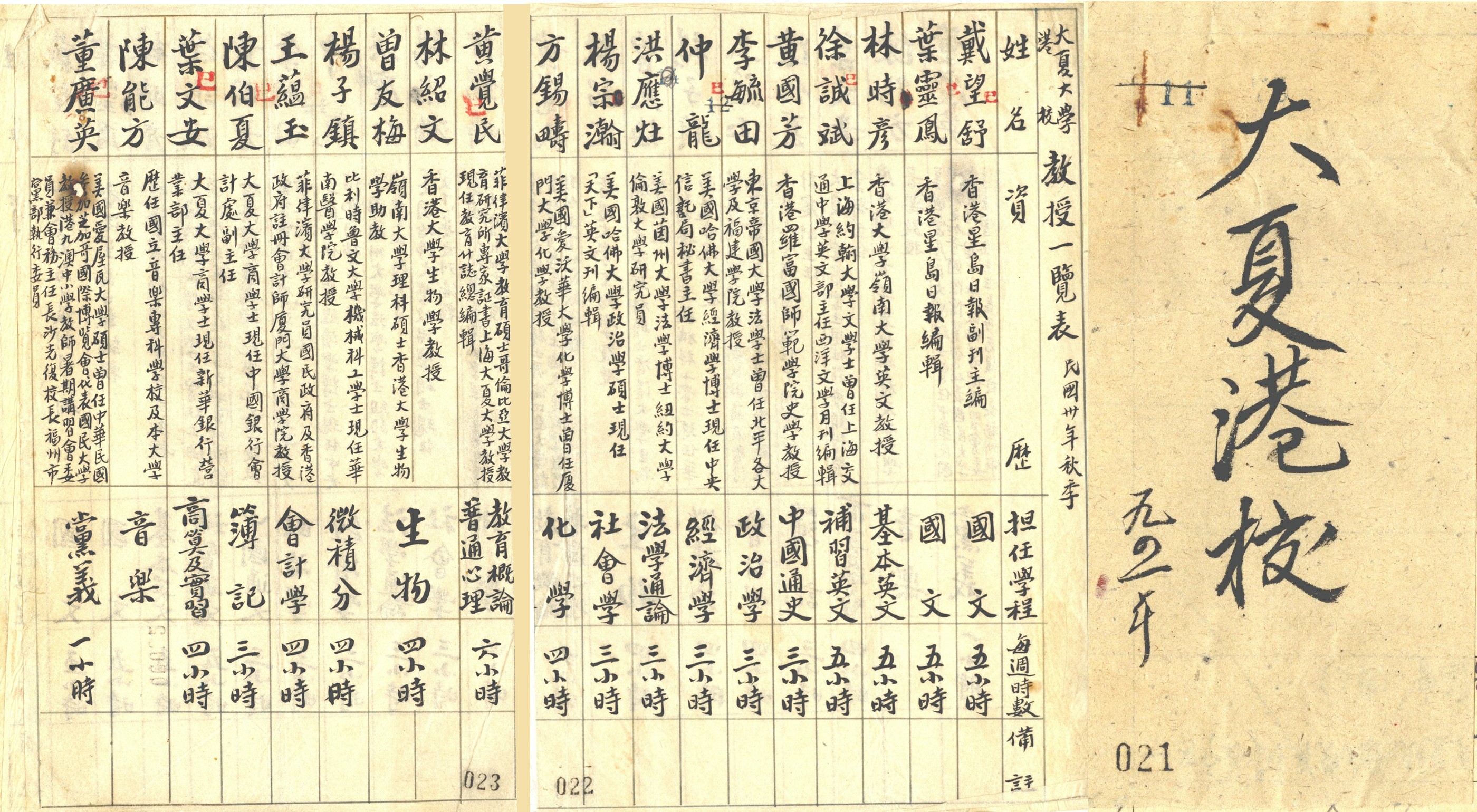 1941年秋季港校教授一览表