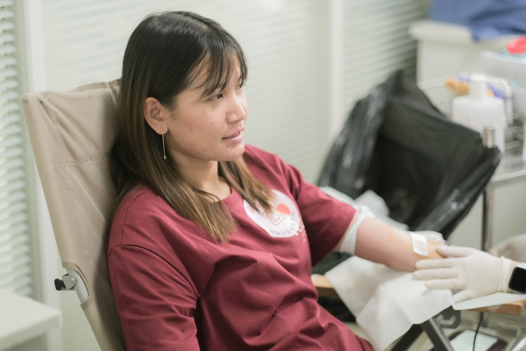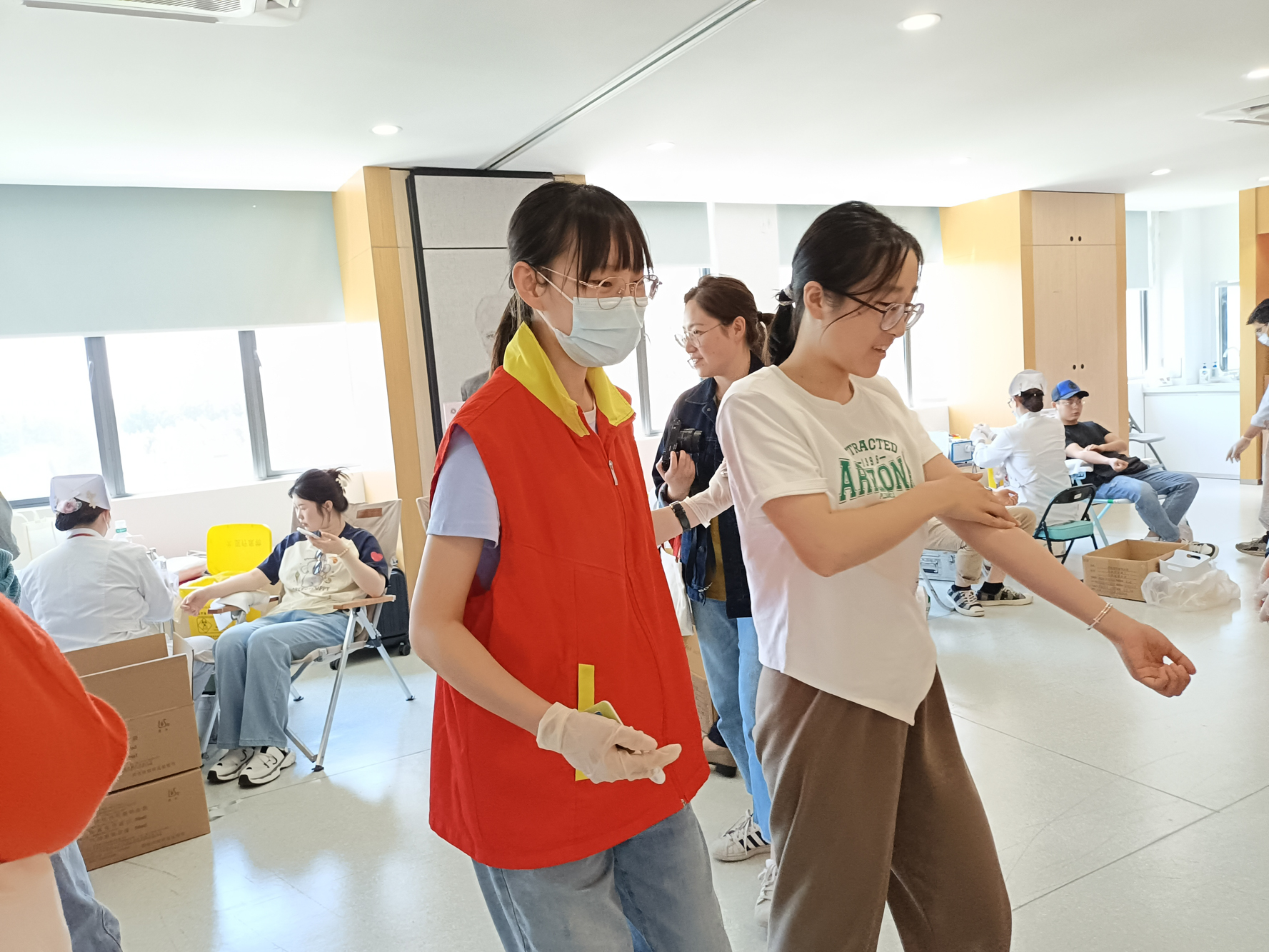 志愿者贴心为献血同学服务