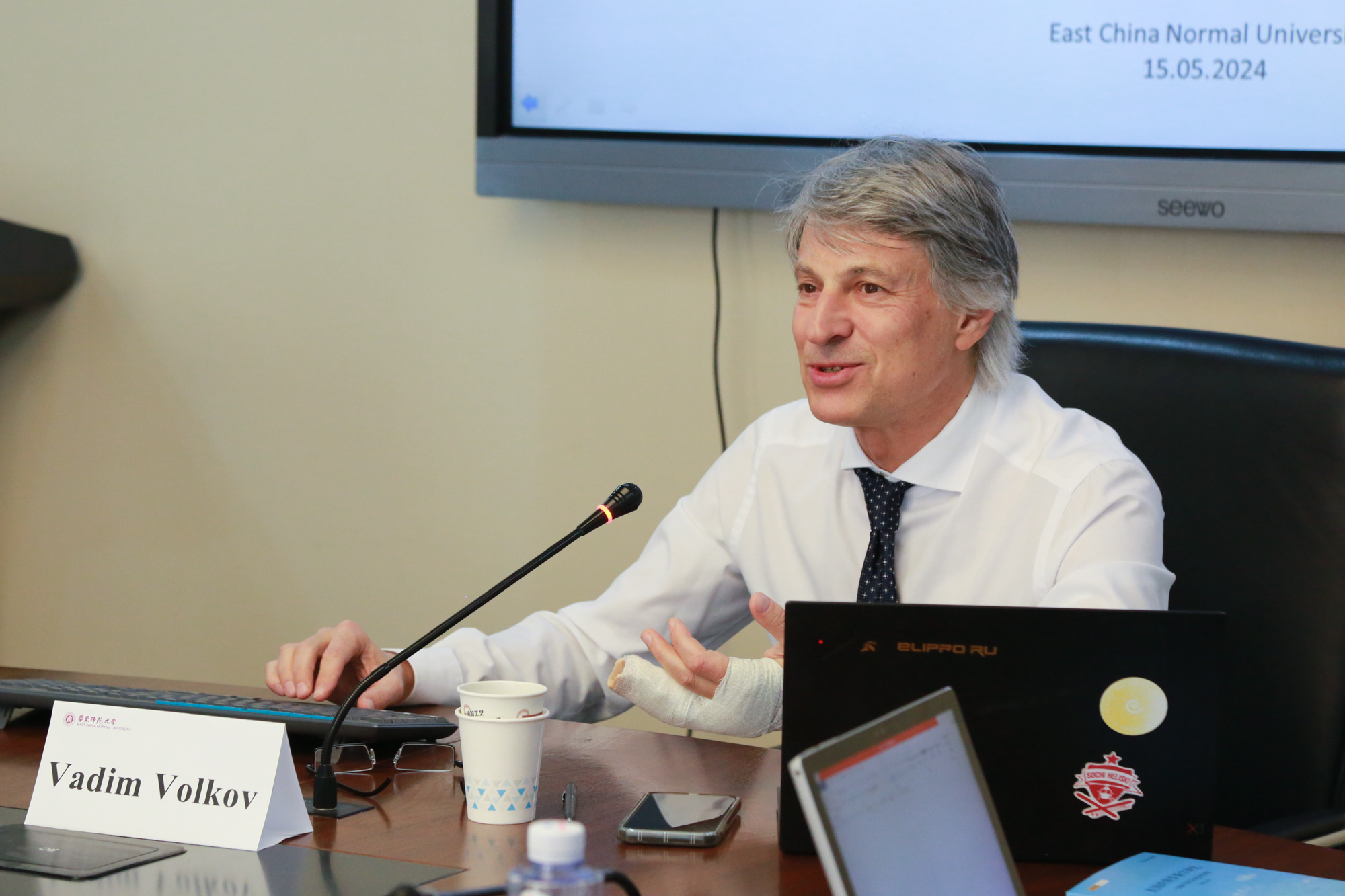 讲座前,瓦迪姆·沃尔科夫教授参观了永利皇宫登录官网俄罗斯研究中心,与中心教师代表进行了座谈。俄罗斯研究中心执行主任刘军教授主持,王海燕、张昕、万青松、肖辉忠、郑润宇、宋羽竹等教师参加座谈。双方介绍了各自的学术研究特色,并探讨了永利皇宫登录官网-俄罗斯圣彼得堡欧洲大学联合工作室未来的合作设想。