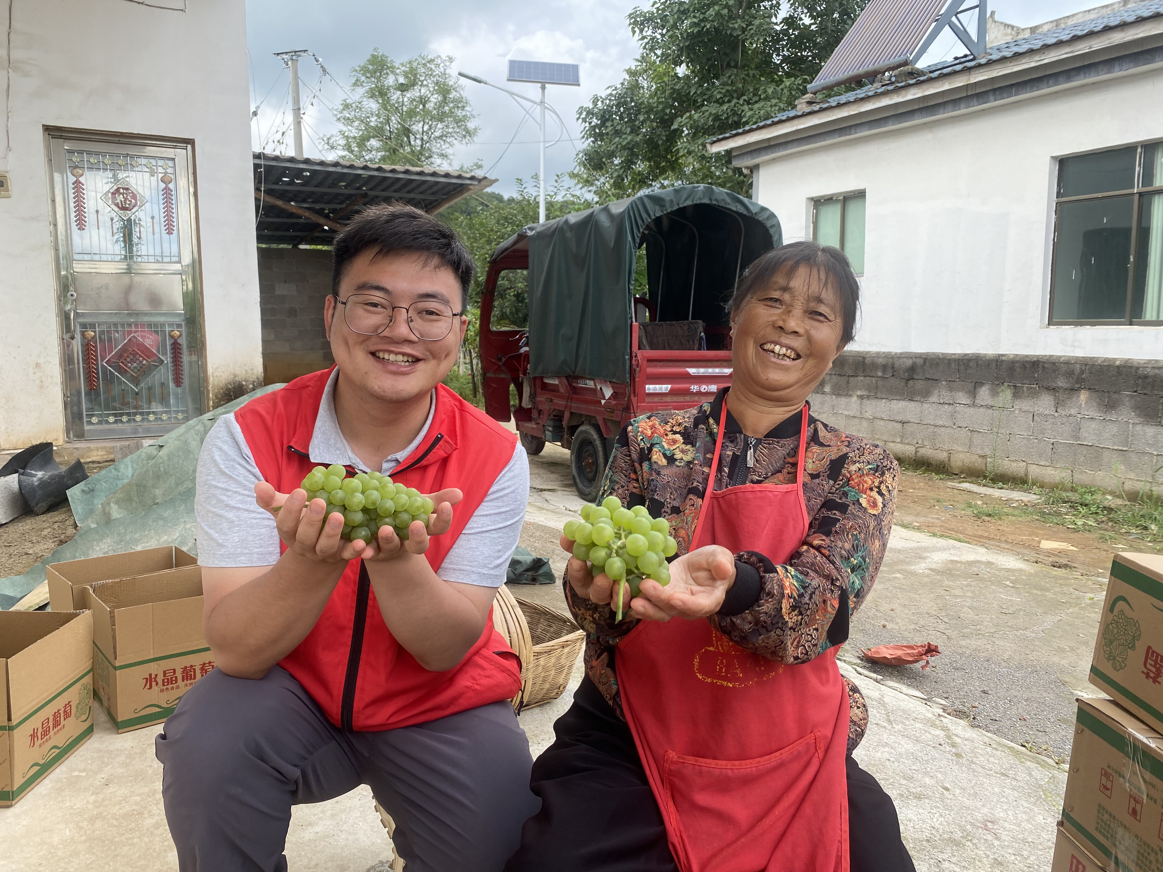华东师大2022届马克思主义中国化研究专业毕业生唐维波帮助农户打包葡萄