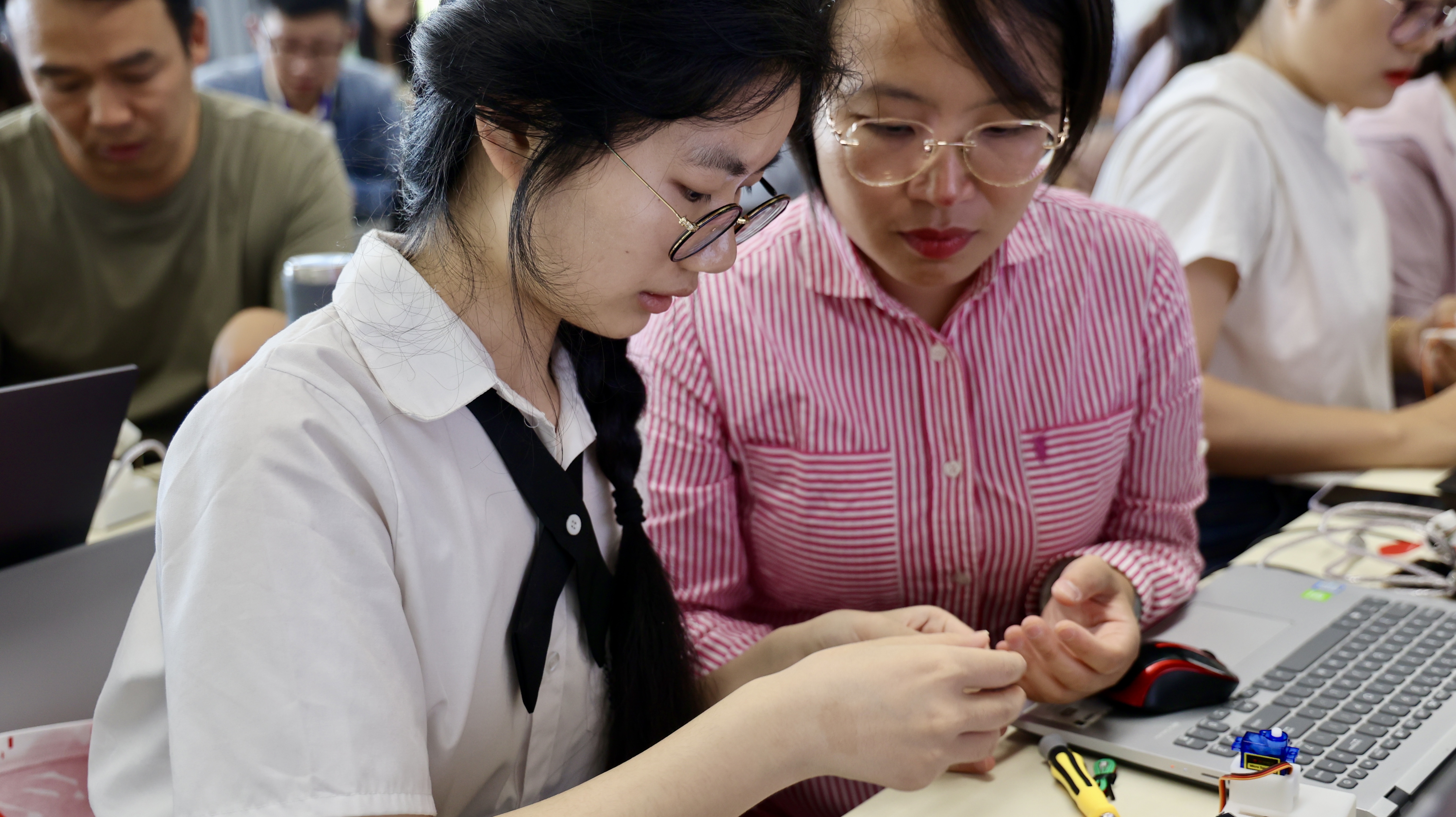 本次研修活动还设计了大语言模型应用、AI图形化交互设计、AI工程实践、开源硬件科创等工作坊和人工智能科技企业参访。学员跟随指导老师,深入理解人工智能核心理念,体验人工智能前沿技术,并在具体的教学场景下完成人工智能实践创作。
