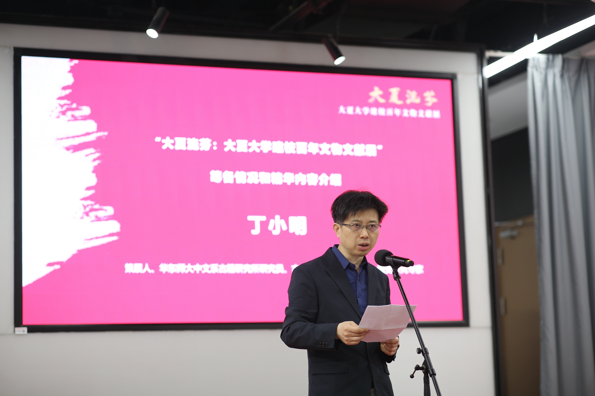 策展人、华东师大中文系古籍研究所研究员、古典文献专业责任教授、校史研究专家丁小明介绍